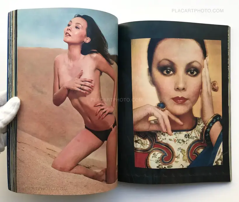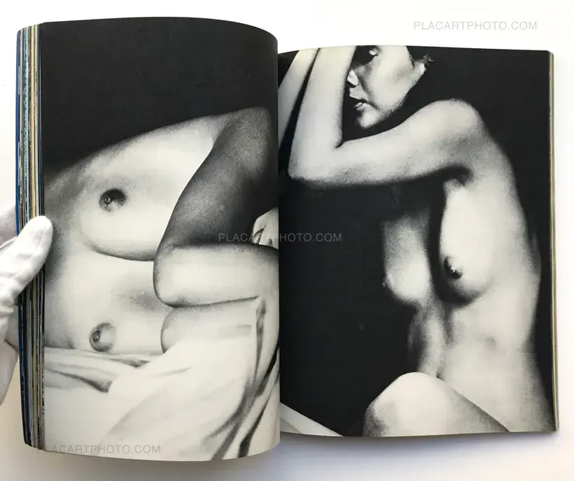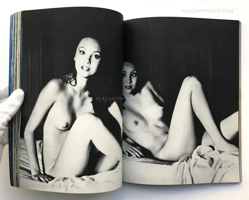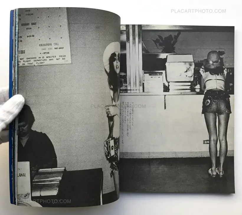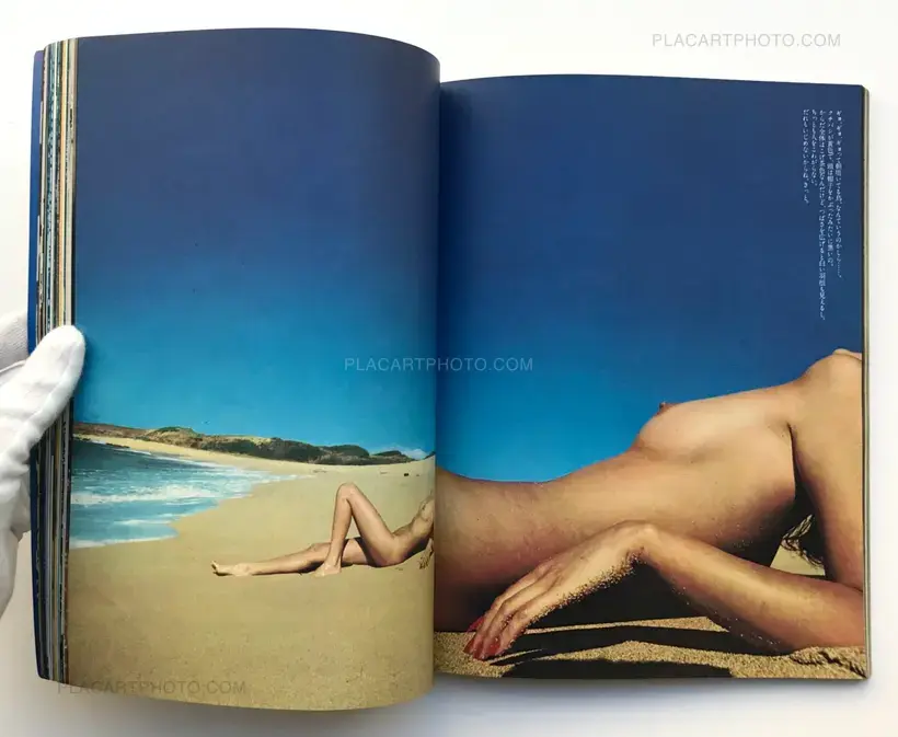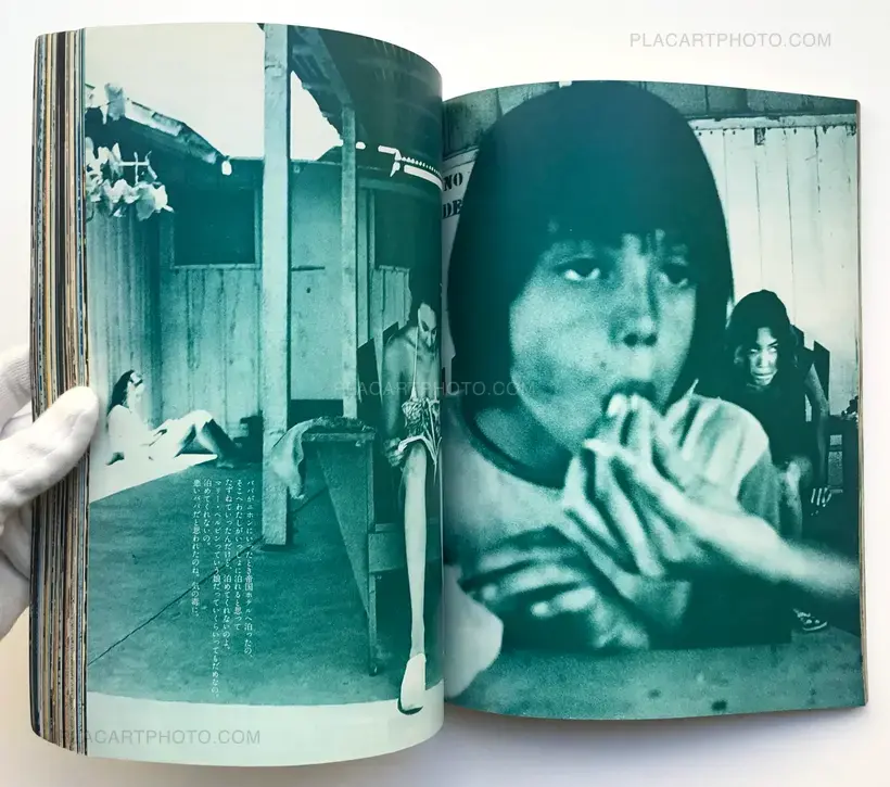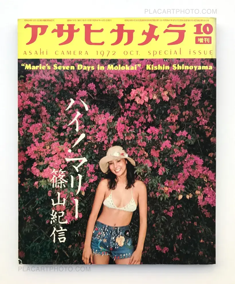 The model Marie, her younger sisters and brother spend a week of shooting in the Hawaii island of Molokai : Kishin Shinoyama doesn't miss a thing and succeeds in taking impressive shots of the casual intimacy of both the beautiful young women and the handsome young boy. He plays with great fortune with grains and colors: the choice of alternating series in colors and blue, green and sharp-contrast black monochrome in Hai ! Marie strongly reminds the reader of the fine Olele Olala (1971). A great special issue with a nice layout and different colors of paper who make the book very pop!