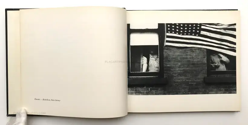 The fact that Frank's America wans not in conventional terms edifying was not the point. The shocking thing was that is was not in conventional terms tragic, but merely untidy and trival. Yet Frank recorded with such clarity and purity his own sense of what was basic to us that the trivial was transfigured, and became symbol. Robert Frank established a new iconography for contemporary America, comprised of bits of bus depots, lunch counters, strip developments, empty spaces, cars, and unknowable faces. This iconography has become a common coin, used now perhaps too easily as a substitute for observation. But here in the original the acuity of Frank's own sensibility is alive and relevant.