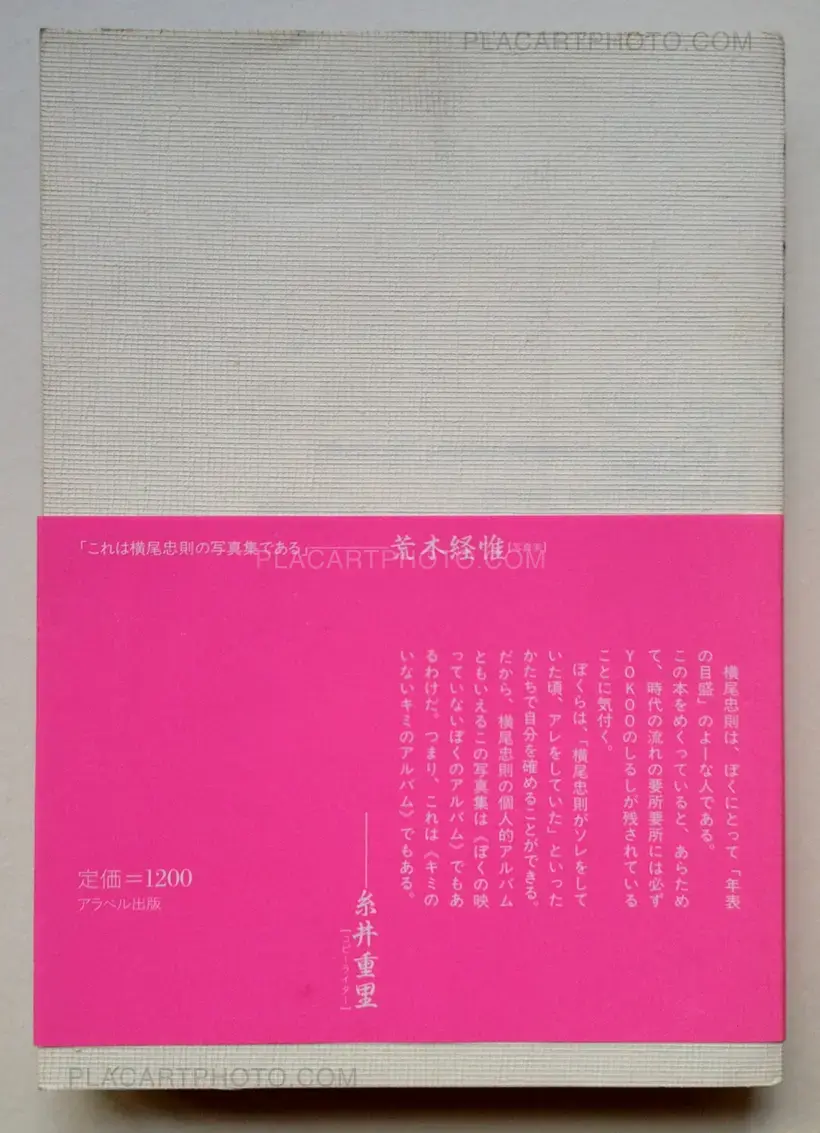 (210 x 150 mm), 771 black-and-white photographs by Kurahashi. Self-wrappers covered with bookbinders mull (gauze) as issued. Publisher’s printed obi, pink. Publisher’s transparent plastic bag (some tears at back), text printed in red.
