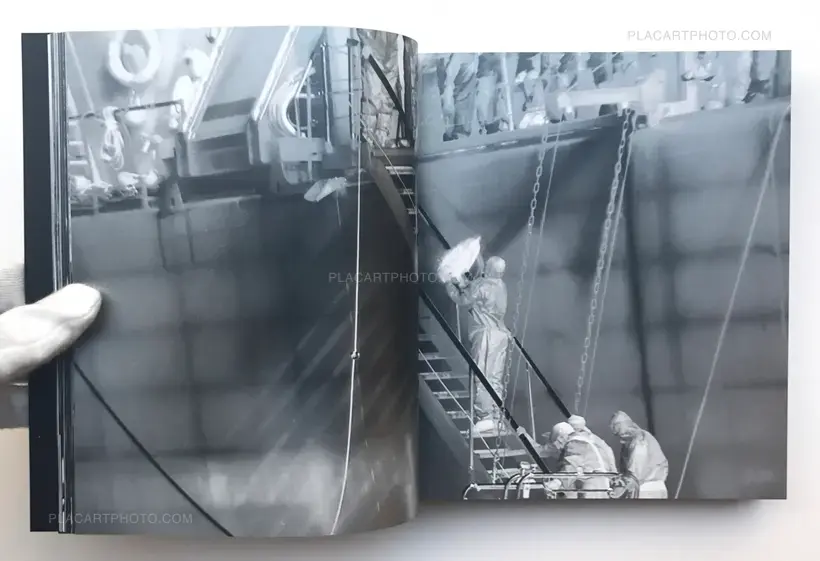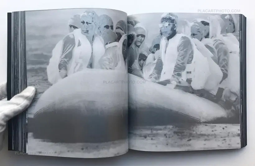 As Mosse writes in his essay, ‘the camera carries a certain aesthetic violence, dehumanizing the subject, portraying people in zombie form as monstrous, stripping the individual from the body and portraying a human as mere biological trace.’ Alluding literally and metaphorically to hypothermia, mortality, epidemic, global warming, weapons targeting, border surveillance, xenophobia, and the ‘bare life’ of stateless people, Mosse’s use of a military telephoto camera serves as an attempt to reveal its internal logic – to see the way missiles see. Following the narrative sequence of the film, the book presents still frames from footage of a live battle inside Syria in which a US aircraft strafes IS positions on the ground, to scenes showing refugees boarding rescue boats off the coast of Libya or gathered along the shores of Turkey under cover of darkness, or making the dangerous journey through the Sahara Desert, and the burning of the Jungle refugee camp. Like the film, the artist’s book bears witness to chapters in recent world events – mediated through weapons camera technology – while also shedding light on the ethical, technological, logistical and aesthetic issues involved in creating this major new work.