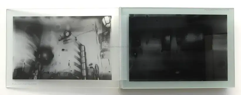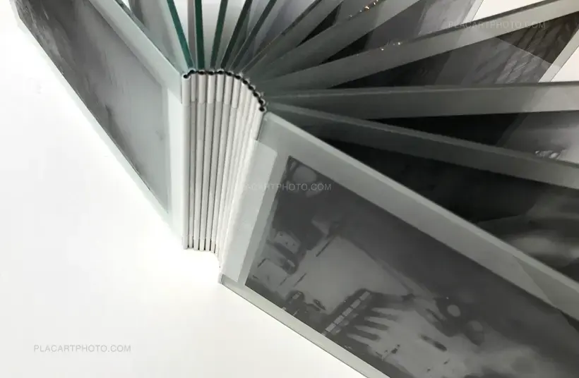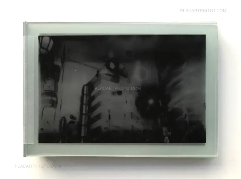 TYO2 is an artists’ book by photographer Antony Cairns. As an assemblage, its twelve sheets of glass reference the form of early photographic techniques as well as the photobook. The manner in which the images are fixed on to the sheets points to the glass negatives used by 19c photographers. This represents Cairns’ continued investigation into the history of photography as well as its mechanical and chemical processes. The choice of subject matter for this artists’ book — Tokyo, as shot in 2016 — also points toward the idea of the camera itself. Post-war Japan has assumed 95% of the world’s camera manufacturing and this hyperbolic development is symbolized by the country’s prototypical city: Tokyo. In a poetic sense, Cairns’ choice of subject in this otherworldly body of work is a meditation on photography itself. Conflating the forms and ideas of photography techniques and the reproducibility of the image results in this artists’ book. Weighing 2.5 kilograms (5.5 pounds), the ethereal images of the city have a hefty materialism.
