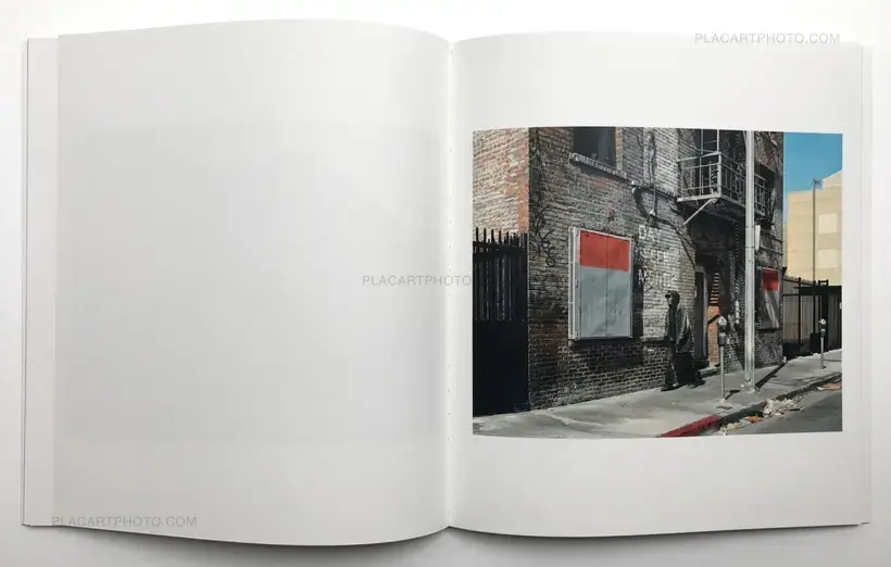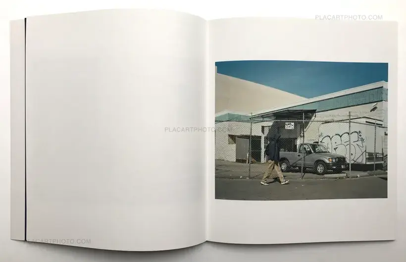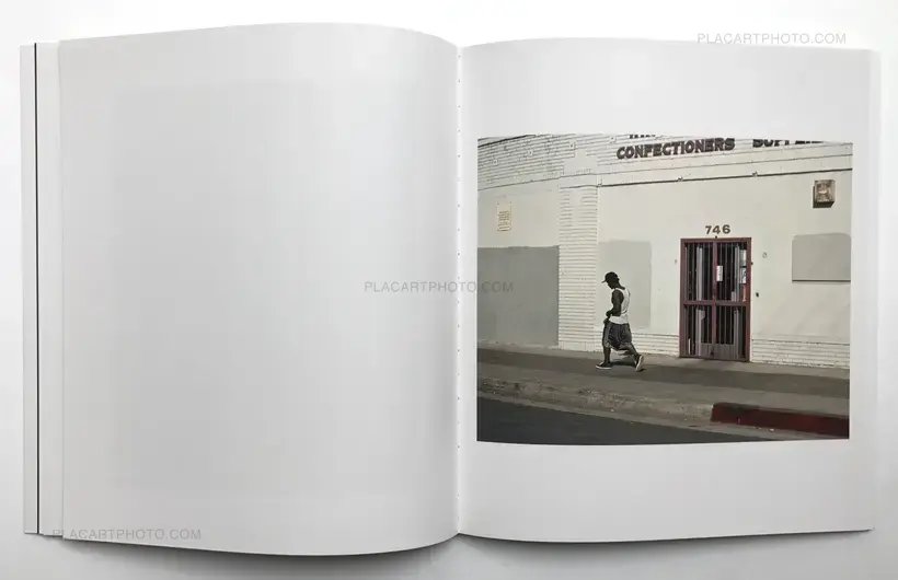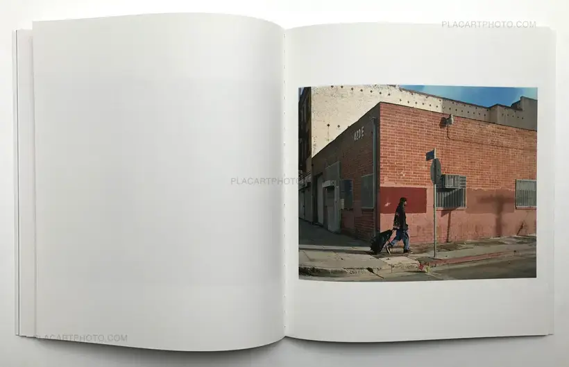 In her new book, Lise Sarfati takes us back to the oddly deserted heart of the city of Los Angeles. Almost deserted... as lonesome men walk dispassionately through the streets, as if on a mission but without any obvious destination. The sun in Oh Man is high, the unifying emptiness of the street basked in the Californian light. The nameless men’s random silhouettes stand out distinctively in front of the city’s characteristic urban backdrop, their central positioning lending them an extraordinary prominence in Sarfati’s photographs. These images add up to a long, aloof traveling, devoid of any narrative and anecdotes, drifting by the evocative sharp lines and angles of the warehouses, the lettering and colors of a Hopperian puritanism opening up the roads to the protagonists.