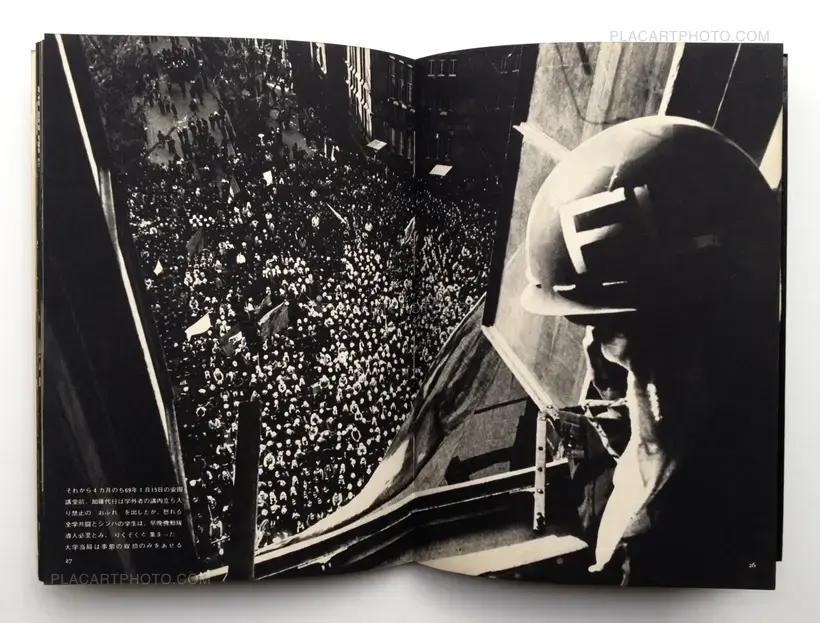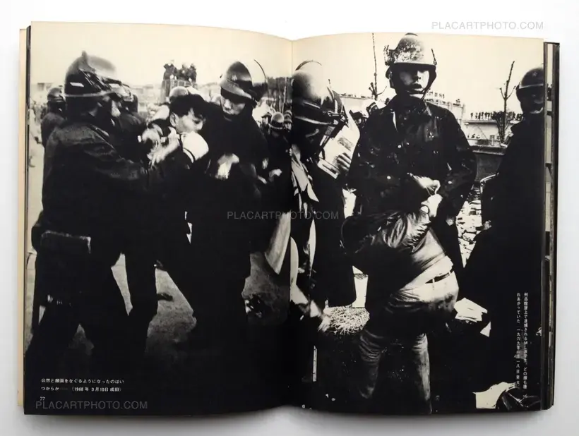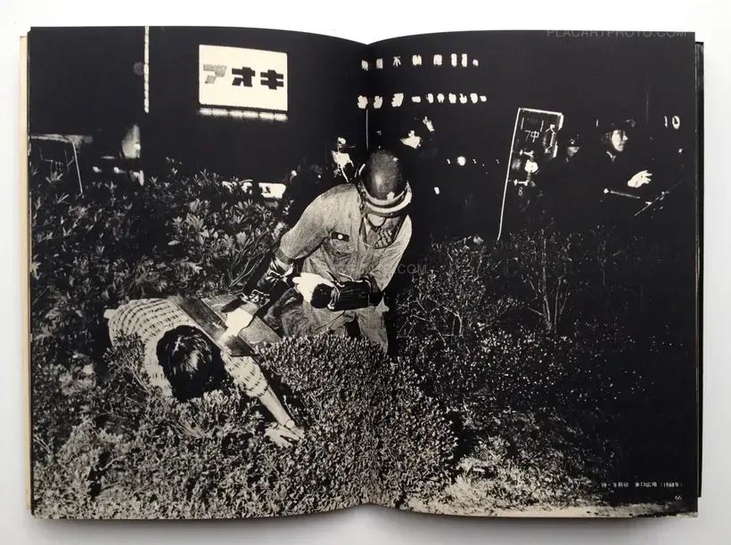 Helmeted and armed with the so-called "Gewalt" clubs and sticks, those students of Zengakuren repeatedly crash with the armed police.