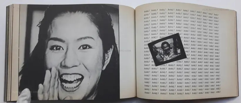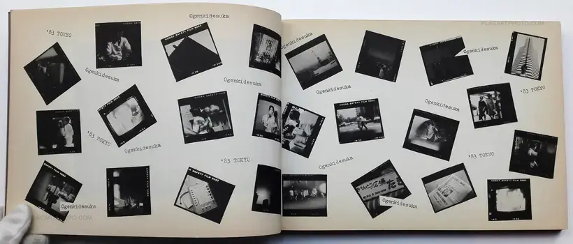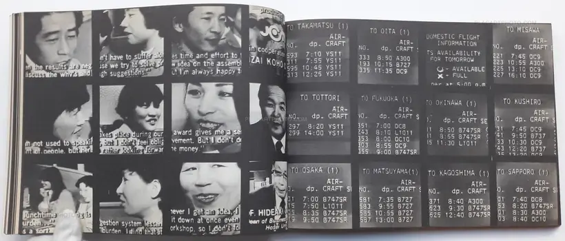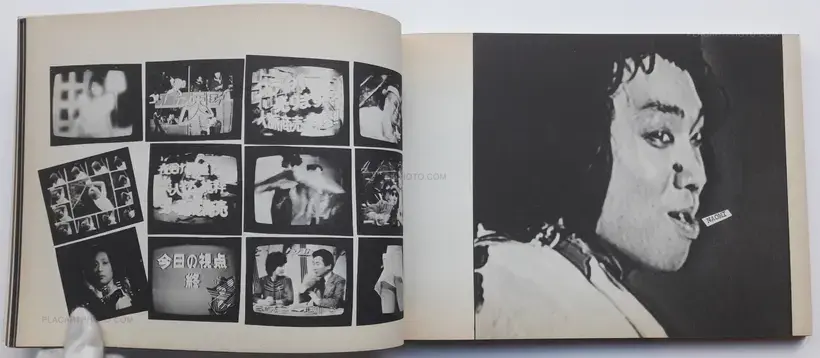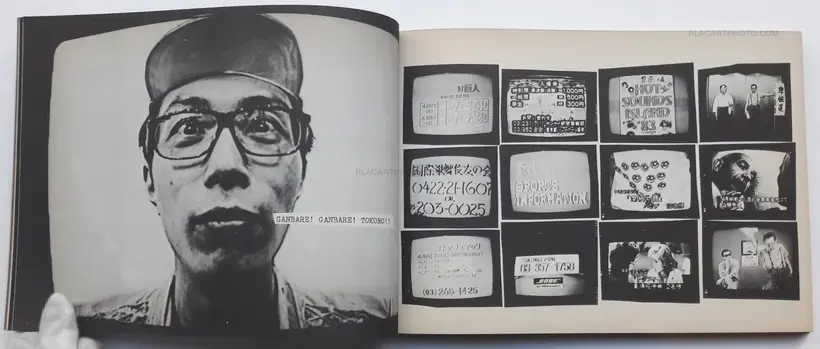 This photobook illustrates in black and white ranks of found images taken from television interspersed with repeated slogans and captions. It echoes the spirit of the eighties showing the worldwide events of that time and network japanese personalities of the eighties.