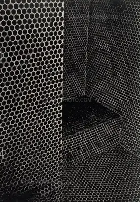 This time during a shooting trip, Moriyama found himself captured by the flood of roundish tiles decorating the restroom of his hotel room in Aizuwakamatsu.