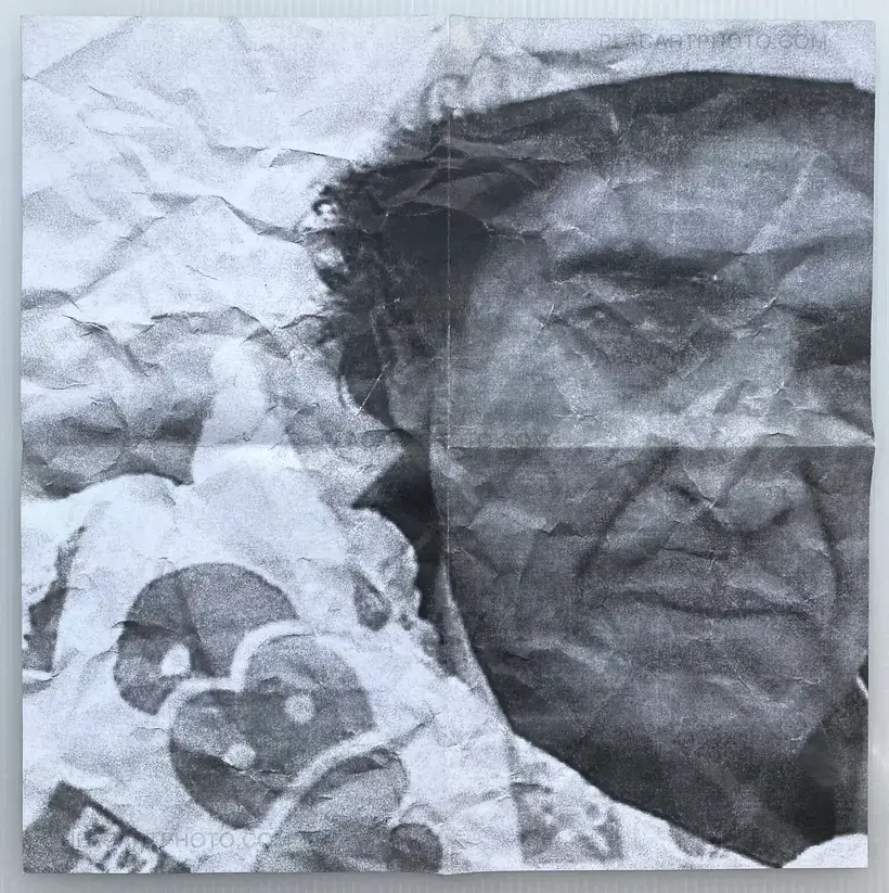Black and white photocopy. Loose pages folded in four (8 square posters) joined by a trace paper strip. 14,5 x 14,5 cm.