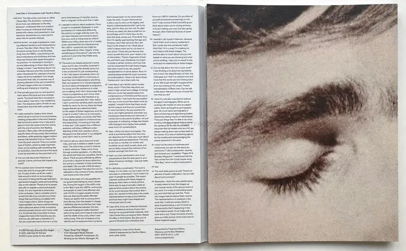 Pacifico Silano is a lens-based artist whose work is an exploration of print culture, the circulation of imagery and LGBTQ+ identity. Born in Brooklyn, NY, he received his MFA in Photography from the School of Visual Arts. Selected solo exhibitions include Baxter ST@CCNY, The Bronx Museum of The Arts Block Gallery, Fragment Gallery in Moscow, Light Work, Melanie Flood Projects, Rubber-Factory, and Stellar Projects. Silano’s awards include the Aaron Siskind Foundation’s Individual Photographer’s Fellowship, Finalist for the Aperture Foundation Portfolio Prize and the 2019 Bronx Museum of The Arts Block Gallery Residency. His work is in the permanent collection of The Museum of Modern Art & Musée de l’Elysée, Switzerland. Silano’s work will be included in forthcoming exhibition Fantasy America at The Warhol Museum, Pittsburgh, PA, March 5–August 30, 2021.