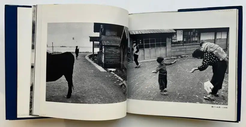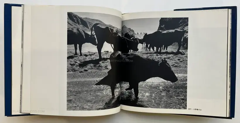 Iwamiya Takeji (1920-1989) was born in Tottori. After graduating from Yonago Commerce and Sericultural School he worked in the shipbuilding industry from 1938 to 1941. He joined the army and was sent to China. Upon his return he settled in Osaka where he established his own studio in 1955. He had been visiting Sado island since 1954 and his first solo exhibition was held in 1956. He continued to make regular trips along the west coast. Most of the images are taken in Shukunegi, a small village five miles west of Ogi City. His approach to photography comes very close to Hamaya's Ura Nihon, both in the focus on hardship and folklore. The images have a strong pre-industrial (not to say medieval) flavour.