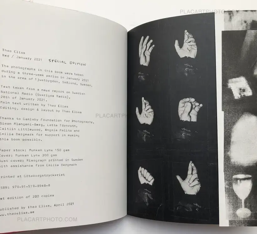 The work is based on a journal the artist kept during January 2021 while being at the countryside in Sweden. With a mixture of photographic approaches together with text from news reports and a written essay, the book resembles a fictional journal that balances between distance and intimacy, violence and passion, winter and heat.