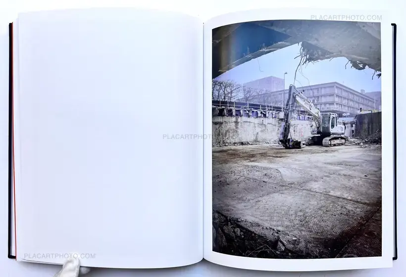 An artistic and architectural follow-up of the construction site as well as an unpublished photographic memory gathered in a 128-page edition, in 24x30 format and composed of 67 colour and B&W photographs. De béton et de Lumière opens with a series of twelve photographs entitled "EARTHMOVING", a personal research on the topography of construction sites.