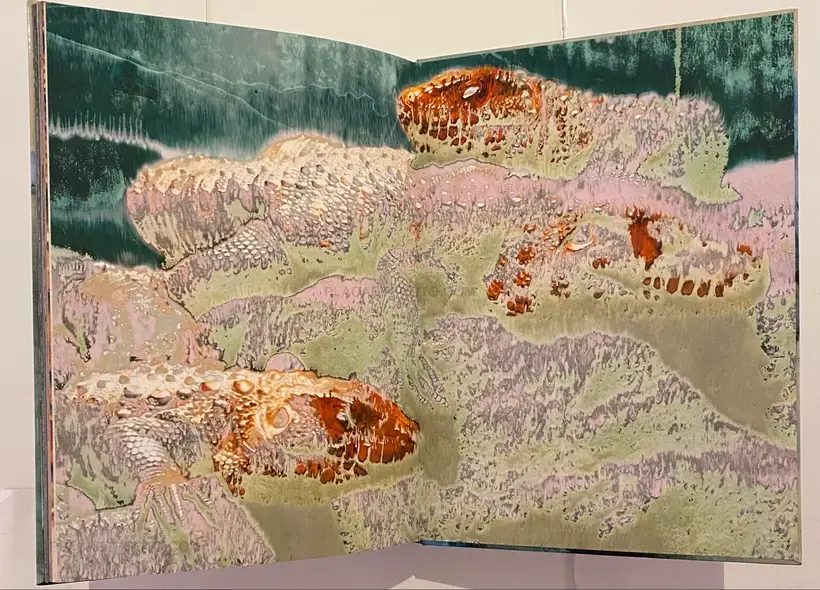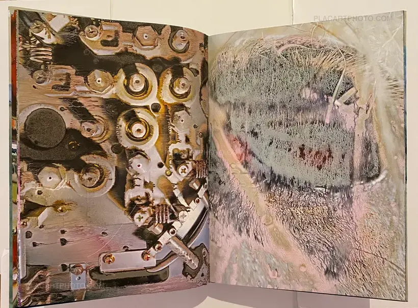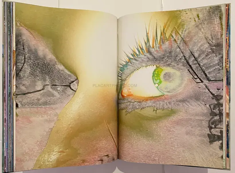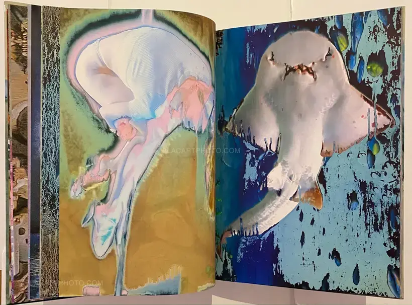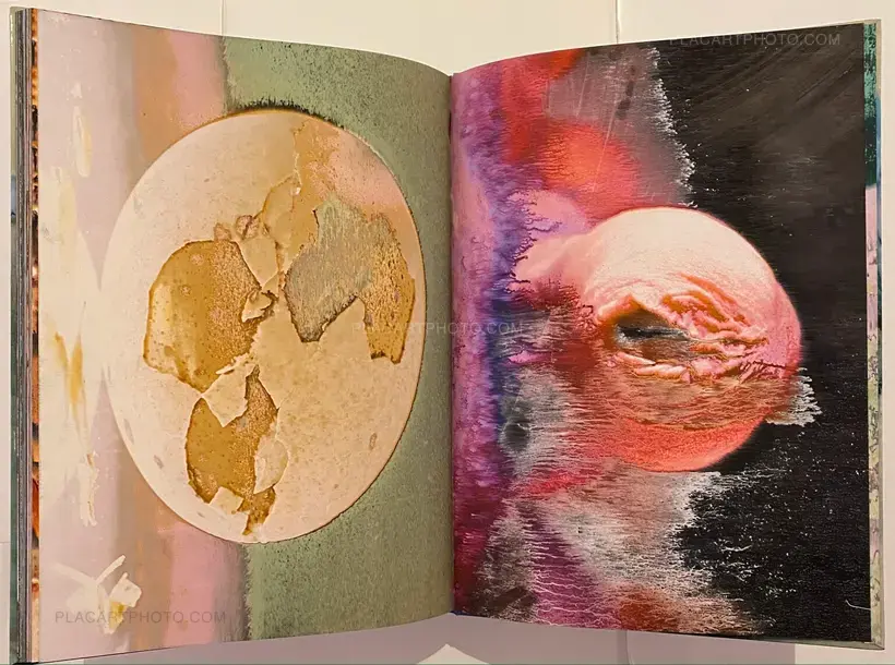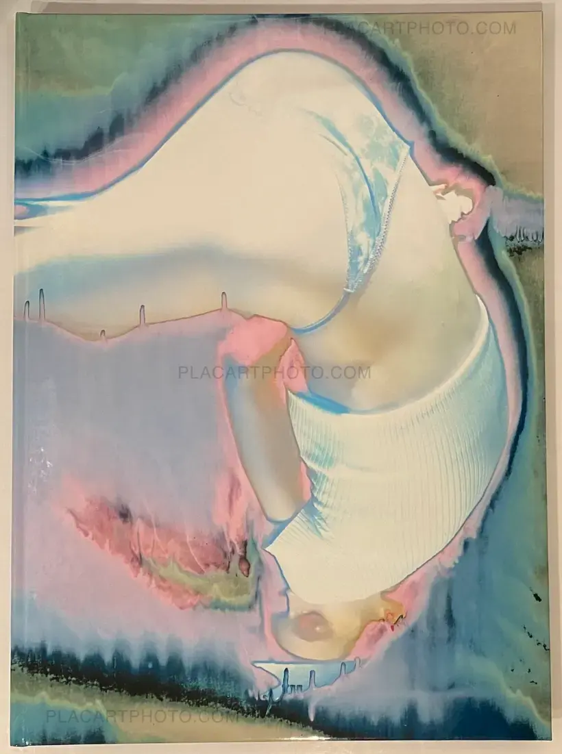 In his artistic practice, Jean-Vincent Simonet pushes the boundaries of the photographic medium and develops procedures to alter images and transform the photographic surface. Drawing inspiration from both pop and punk, with several masters of Japanese photography among his key influences, Simonet’s approach to photography is instinctive, leading him to build up an impressive and varied collection of images, a veritable archive of his passions nurtured over time (urban scenes, nocturnal reminiscences, floral arrangements, printers at work, and female performance artists during breaks, to name a few). Between June and September 2021, Simonet hand produced 2,376 reinterpretations of images from this corpus, each 32 × 44 cm (12.6 × 17.3 in.), on a large-format inkjet printer at the Fouquet Simonet printing firm in Bourgoin-Jallieu, near Lyon. The creative process developed by the artist for this project involved using the machine in a manner contrary to its intended purpose. He entered false settings and used a waterproof and non-tearable synthetic paper normally unsuited for this type of printing. As some of the ink on the paper’s surface remained very wet upon emerging from the printer, Simonet applied a range of drying techniques. He varied the drying intensity and duration, then rinsed off the excess pigment, altering the result with each action. Each Waterworks book in this series brings together a unique set of sixty-six reinterpreted images from the corpus, assembled and bound by hand at the Reliure du Centre bindery in Limoges.