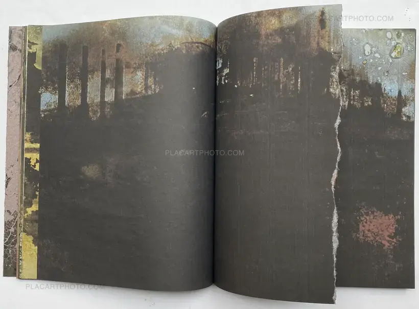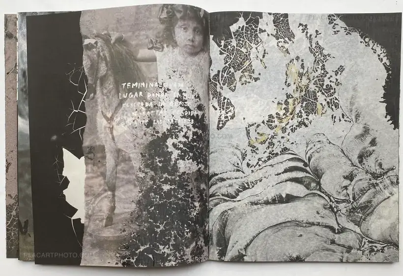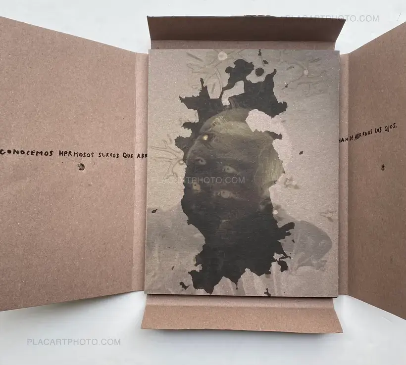 "Mictlán is an experimental jewel that crystallises in an original artist's book, printed in a signed edition limited to 100 copies. It is presented in an amate case and the body consists of nine sheets, each one with a different type of paper: kraft, butter, revolution, education, bond, estraza, grey lead, among others. The graphic design has been the responsibility of Ramon Pez, who has excelled in one of his most brilliant achievements". Throughout the book, Ramon Pez plays with hidden pages: some are ripped, which are almost invisible when flipping through. A booklet of text is hidden at the back of the book, behind the jacket.