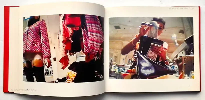 In the spring of 1997 I began to record my habits, going to the stores with a miniature surveillance camera in my purse. I videotaped through one or the eyelet cutouts and brought the random images home with me. Later, watching the activities on a monitor, I realized that my memories of the shopping experience conflicted with the camera's recordings. From these tapes, I made the stills for this book.