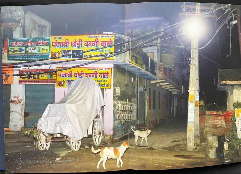 This unique artist book is contracted as a unique, 20 meter long, double printed concertina, taking you on a fantastical journey through the kinetic Indian night to the breath-taking dawn.