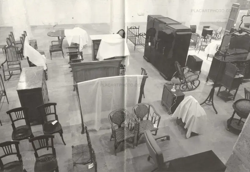 From the publisher: "The exhibition conceived and carried out site specifically by Christian Boltanski for the city of Valencià, creates an intimate relationship between these central ideas that control his work and the specific characteristics of the venue for which it has been designed. The exhibition has been baptized Compra-Venta (Buy and Sell) and is made up of a large number of private and personal objects (furniture, lamps, toys...) that many people from the city and the surrounding area are interested in selling. These objects have been collected, stored and distributed by the artist himself in the venue of the Almudin to be viewed for possible acquisition by anybody who is interested...As the available articles are sold they will be covered by a white sheet to denote that they are no longer for sale. They will be partially or totally covered form view and should all the articles be sold eventually, we would be faced with the sight of a room completely covered in white sheets like a mortuary full of stored corpses."