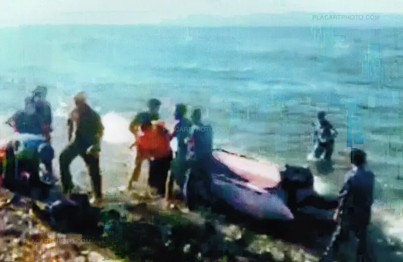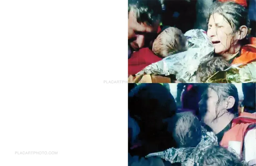 Ezra Nahmad has selected and reworked stills from tv reports on Syrian refugees arrival to Europe in summer 2015. The very low resolution images were cut from online youtube version of the reports. This is not his first experience of this kind. The artist lives in Paris but his actual works are rooted in the Middle-East, mostly in Israel. He has published recently Without/Sans et Sounds Hell with Peperoni Books, Berlin.