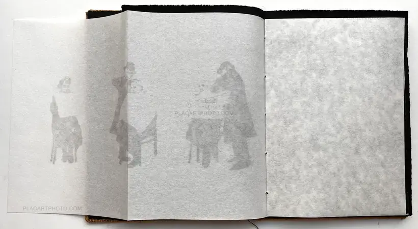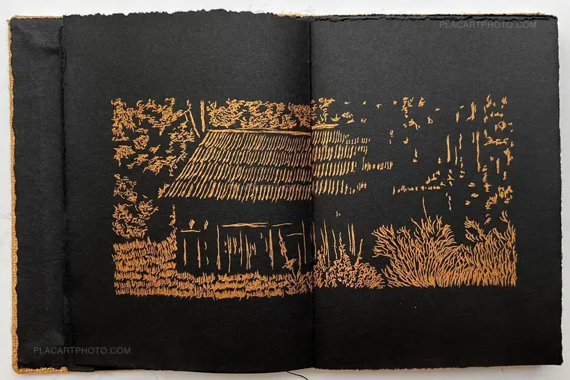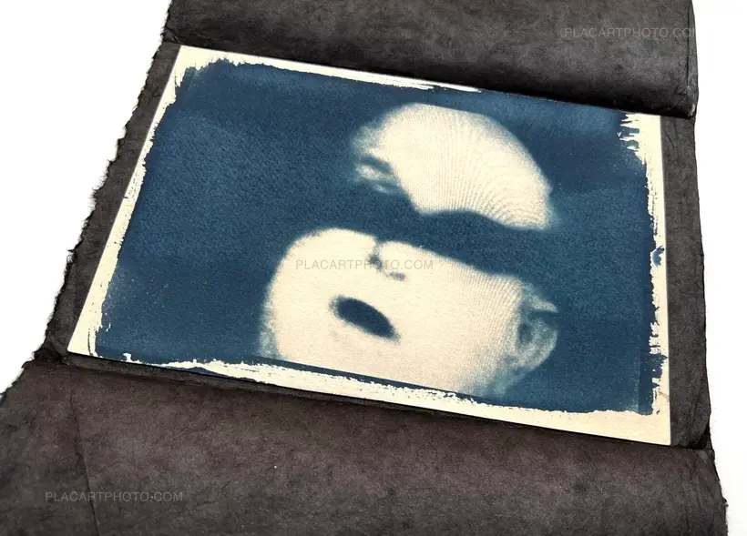 This handmade art edition is printed on Hahnemühle Black paper using gold Risograph Printing technique alongside inkjet prints printed on Japanese Kozo paper. It includes one unique A5 Cyanotype tanned in coffee on Fabriano Artistico paper (100% cotton, chlorine and acid free paper), signed. The book is housed in a slipcase.The book is available in a limited edition of 45 copies, numbered and signed.