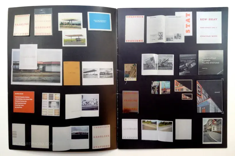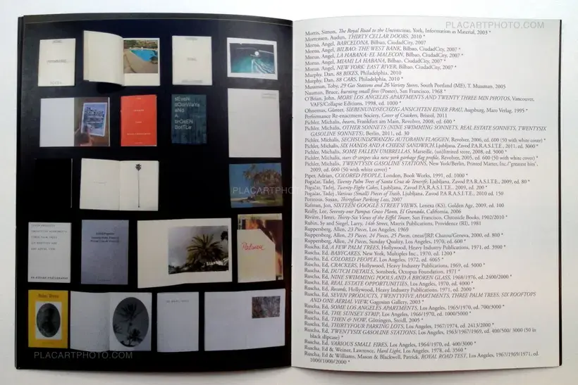 There is actually none of the books published by Ruscha in the 60ies, which has not been paraphrased yet, be it the Gas Stations (e.g. Jeff Brouws, Toby Mussmann, Eric Tabuchi, Michalis Pichler, Anonymus, Michael Maranda), the Fires (e.g. Bruce Nauman, Jonathan Monk, Yann Serandour, Thomas Galler), the Apartments (John O'Brian, Anne-Valerie Gasc, Eric Doehringer), the Parking Lots (Hermann Zschiegner, Travis Shaffer), the Swimming Pools (Jen Denike, Taro Hirano), the Real Estate Opportunities (Adam&Kate Davis, Eric Doehringer), the Royal Road Test (Tom Sachs, Simon Morris, Martha Hlady) or the Sunset Strip (J.F. Schnyder, Jonathan Monk, Derek Sullivan, Tom Sowden), even the Palm Trees (Tadej Pogocar, Eric van der Wejde), Colored People (Jonathan Monk, Tanja Lazetic) and Hard Light (Achim Riechers) have been taken up explicitly.