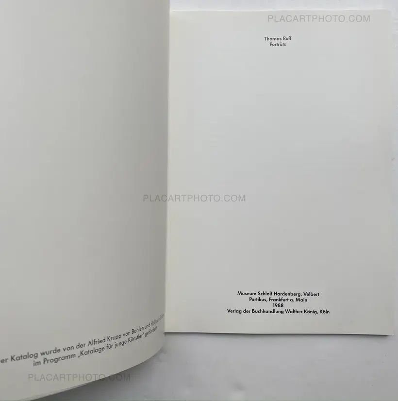 The catalog for the exhibitions at the Museum Schloß Hardenberg, Velbert, and at the Portikus, Frankfurt a. Main presents a series of 39 portraits in bust form, created between 1981 and 1987. This series of color illustrations exemplarily documents the portrait work of Thomas Ruff and - in keeping with the character of a book - foregrounds the important element of the series.