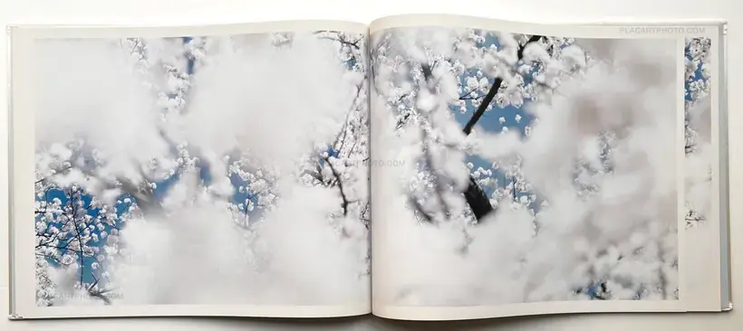 Large format images of snow falling at night and on pine and cherry trees.