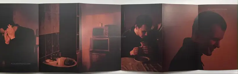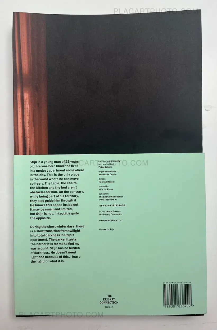 Stijn is a young man of 23 years old. He was born blind and lives in a modest apartment somewhere in the city. This is the only place in the world where he can move so freely. The table, the chairs, the kitchen and the bed aren't obstacles for him. On the contrary, while being part of his territory, they also guide him through it. He knows this space inside out. It may be small and limited, but Stin is not. In fact it's quite the opposite. During the short winter days, there is a slow transition from twilight into total darkness in Stin's apartment. The darker it gets, the harder it is for me to find my way around. Stijn has no burden of darkness. He doesn't need light and because of this, I leave the light for what it is.