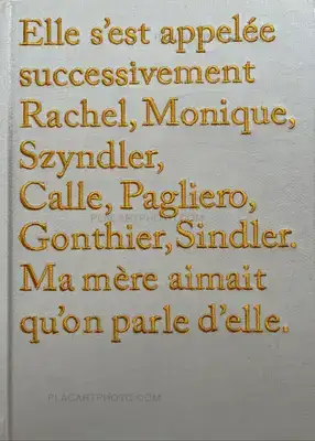 The haunting story of Sophie Calle’s mother, told through diary excerpts and family photographs. “She was called successively Rachel, Monique, Szyndler, Calle, Pagliero, Gonthier, Sindler,” reads the first lines of Sophie Calle: Rachel Monique, embroidered on the cover. “My mother liked people to talk about her. Her life did not appear in my work, and that annoyed her. When I set up my camera at the bottom of the bed in which she lay dying—fearing that she would pass away in my absence, whereas I wanted to be present and hear her last words—she exclaimed, ‘Finally.’” Sophie Calle: Rachel Monique tells the story of Monique Szyndler, Sophie Calle’s mother who died in 2007, through diary excerpts and photographs selected by the artist from family albums. Described as “haunting” and “a mystery novel that tirelessly searches for a missing person,” the Rachel Monique project honors a daughter’s complicated relationship with her mother and the artist’s deeply felt grief. This volume, presenting Calle’s installation of Rachel Monique at the Palais de Tokyo, was designed in close collaboration with the artist. The cover text is embroidered to create a precious object, and all of the texts relating to the installation are beautifully embossed. Sophie Calle: Rachel Monique is a highly personal and moving book, intimate and universal in its expressions of mourning and memory.