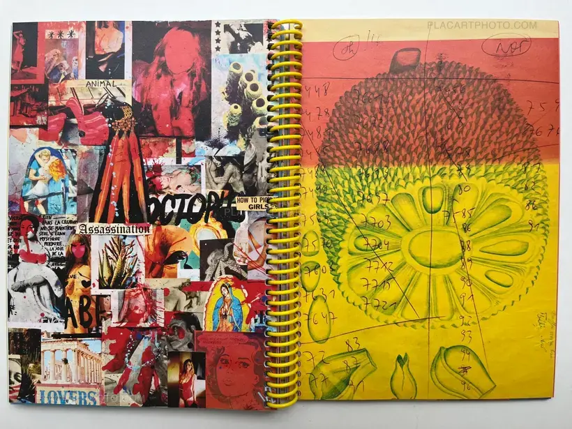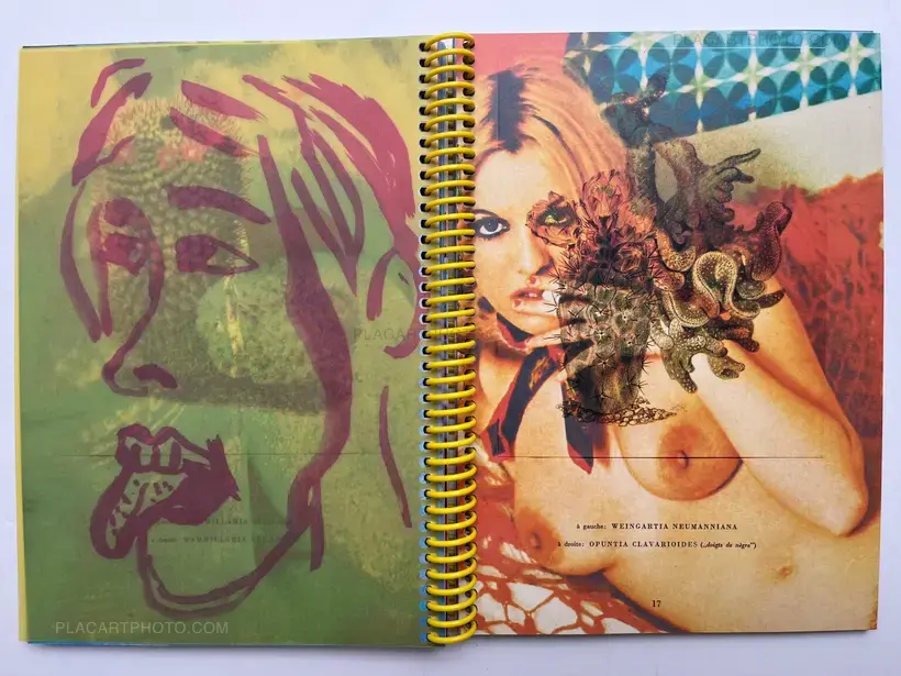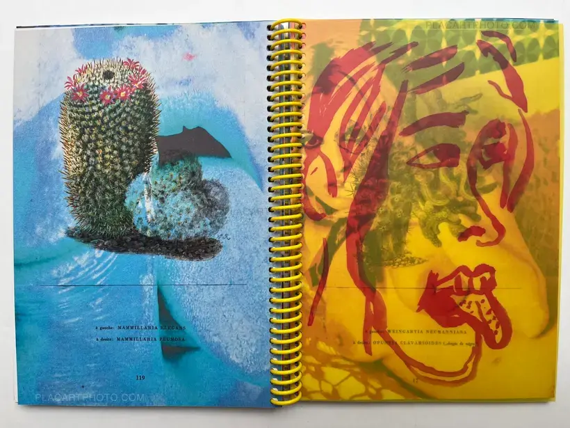 It is a mix of collages made by the artist, pictures and printings of vintage erotic images on an old cactus book.