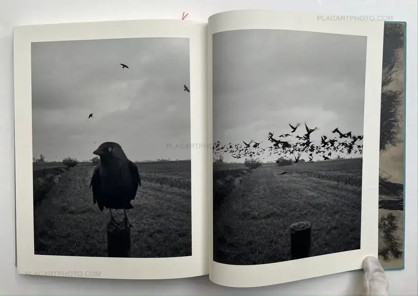 Most were species I had never seen before, though a few I recognised from my teenage obsession with inner-city bird life, which had been central to my escalating interest in making photographs in Bristol, growing up. My frame of mind making this new work took me right back to those years as if completing a full circle. This new exercise became an accidental way of getting to know both bird behaviour and even individual birds. Some were small, some were large, and some had distinctive personalities, completely vivid, and resembling people I knew. I am very drawn to the shapes presented by birds in flight, birds perched, and those in between the two: claws clenched overhanging the surface of the pillar, translucent feathers splayed to reveal patterns and markings, images as pristine as in an identification book, and those, too, which are battered, wet or windswept. The shapes often conjured images of the birds playing stringed instruments, or wearing cloaks and masks, exercising or screaming. I was also struck by how the relatively fixed pre-composed rectangle of the camera offered a reminder of the infinite variations of a single scene over a period of time, suggesting that nothing happens twice.