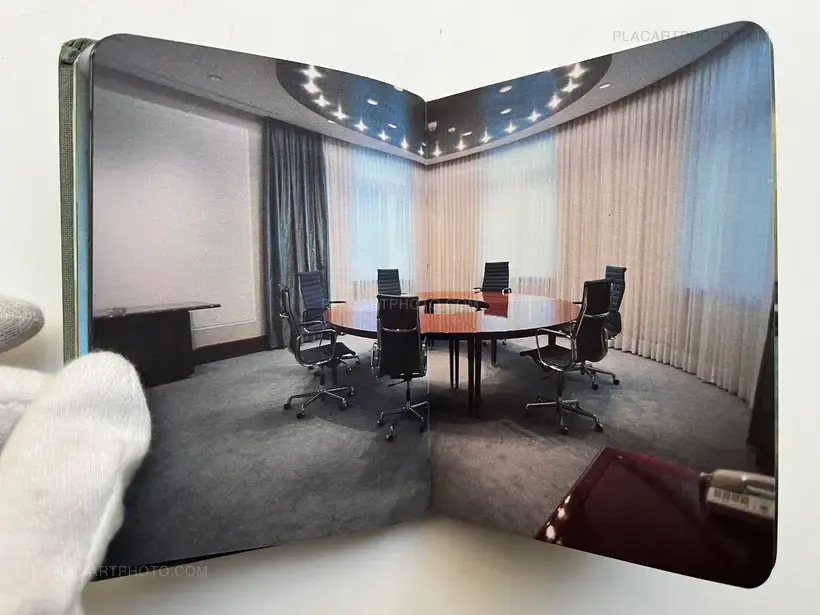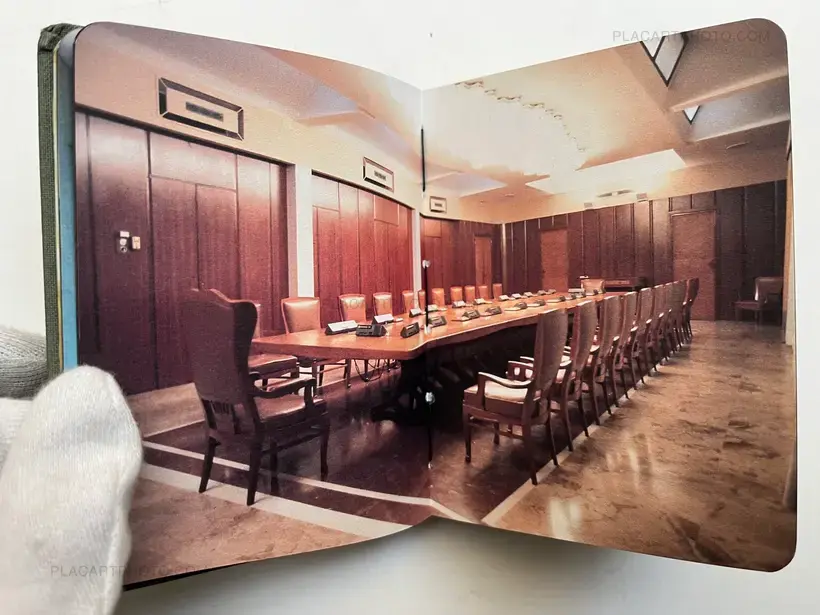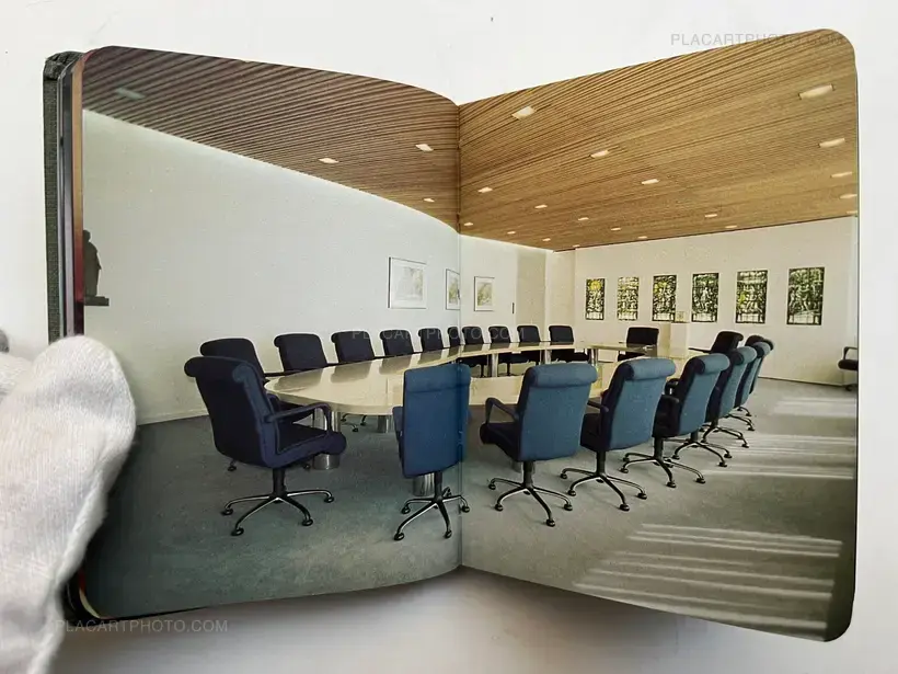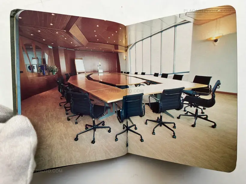 Cited in Martin Parr and Gerry Badger, The Photobook: A History, Volume II. "Dutch artist Jacqueline Hassink explores the upper echelons of corporate culture. Her photographs of the boardroom tables of multinational companies bring us into the heart of those spaces where nameless and faceless individuals make decisions that affect us all. Using the 'Fortune 500' list, Hassink approached Europe's top forty companies. Only 21 allowed a photograph to be taken of their boardroom. Those that denied access are included as black photographs."