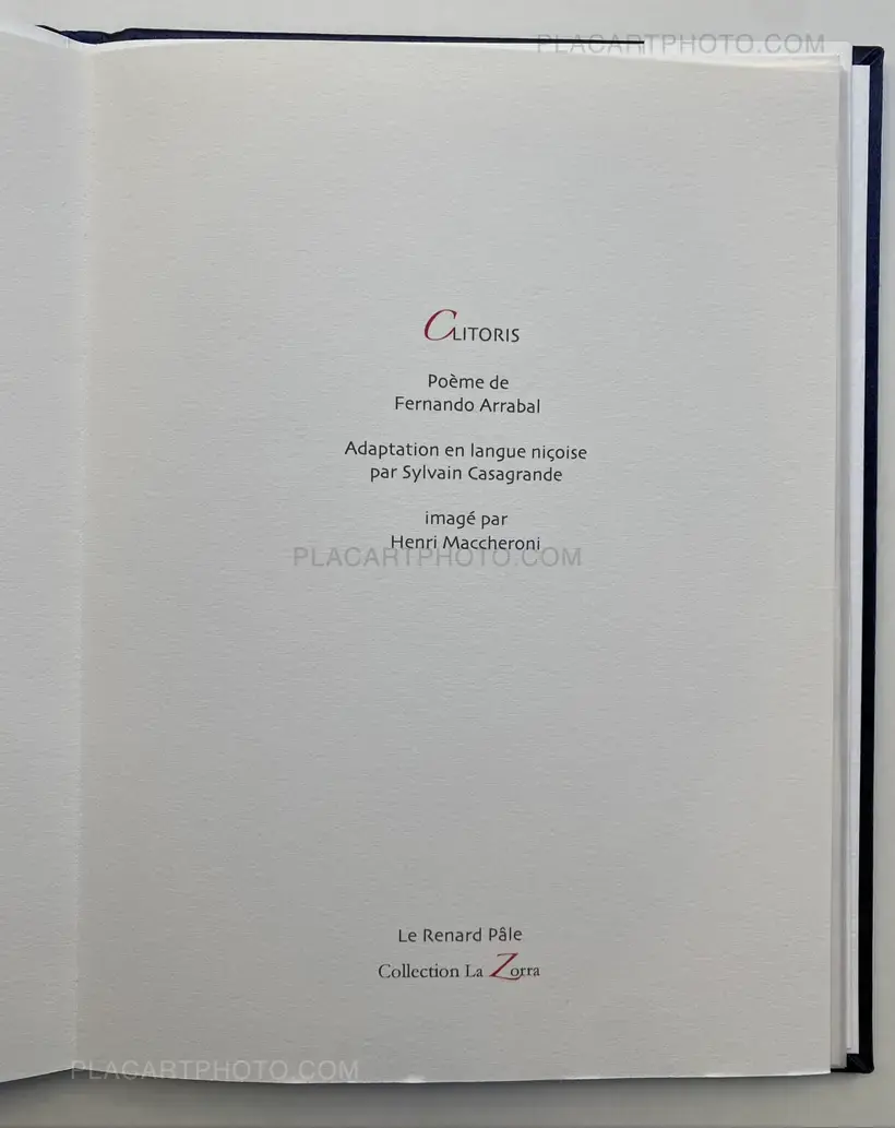 This first edition of Clitoris with poems by Fernando Arrabal and the translation into Nice by Sylvain Casagrande is accompanied by 2 vanities by Henri Maccheroni, (photograph pasted on wash).