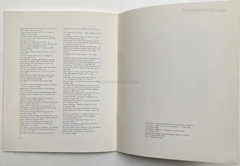 Exhibition catalogue for the Museum Moderner Kunst Wien from February12 to March 19, 1989. Early works from Bill Henson is presenting in this book "UNTITLED 1983-1984" This catalog is composed with some small triptych and some big prints.