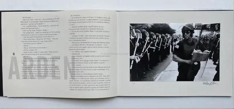 The text by Charyn accompanying Klein’s photographs, in two columns in French and English, describes a day in the political campaign of Isaac Sidel, the police detective at the center of a critically-praised series of novels. Charyn is a writer who “has made [New York City] his universe and has turned it into something entirely his own” (Washington Post). In 1963 Klein “was named one of the most important photographers in the history of the medium” (McDarrah & McDarrah, 261). As the publisher notes in the laid-in booklet, these “photographs can not be sold as original prints elsewhere than in this edition.” Charyn’s full-length novel Citizen Sidel was published in 1996.