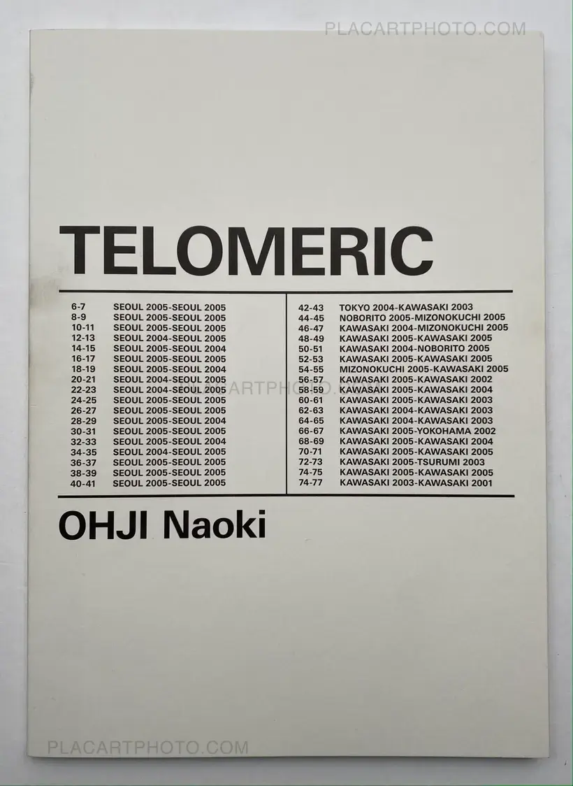 Published in 2006 by the Photographers Gallery and designed by Tanaka Isao, Naoki Ohji's _TELOMERIC _is a photobook which contains a series of images shot within the cities of Tokyo, Kawasaki and Korea. Having taken the image from 2001-2005, TELOMERIC is a photographic exploration within the different spaces and points inhabited.