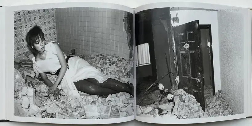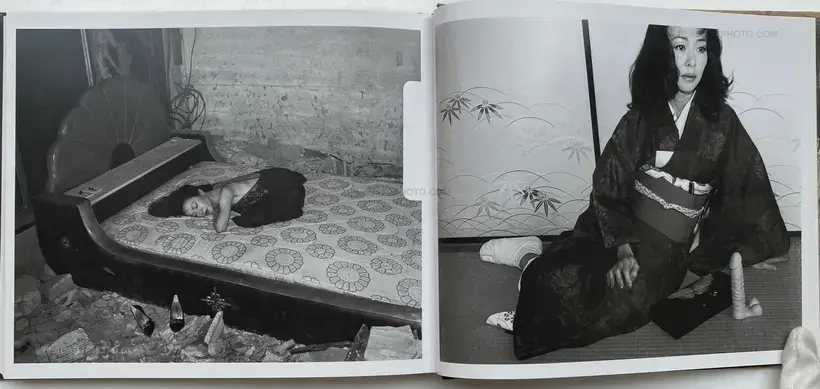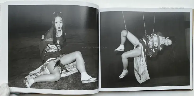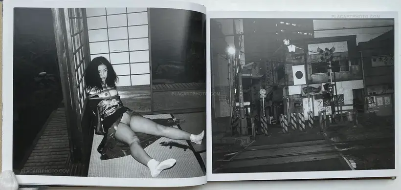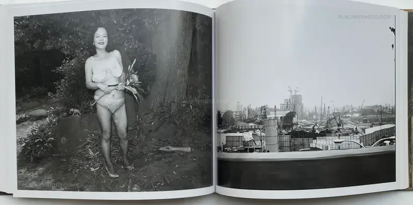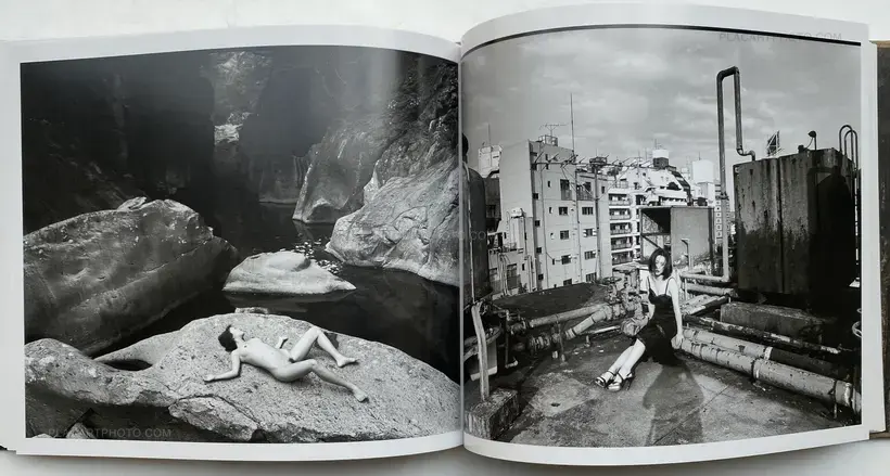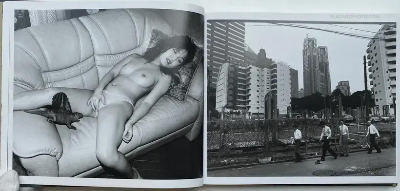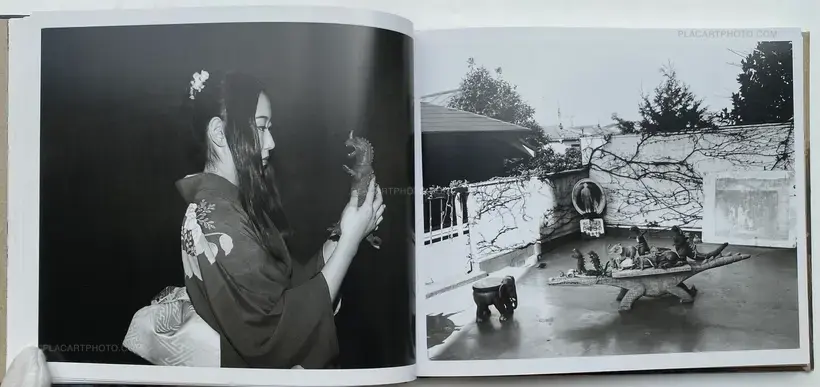 Published by Eyesencia, Seikimatsu no Shashin is a visual narrative embodying a physical manifestation of the artists memorial to 1999. Within this hardcover publication are a series of images which examine, explore Araki's ongoing photographic oeuvre of his "i-photography". Here staged images of his models roped in Kinbaku captures and references both the aesthetic importance of the tradition of Kinbaku and the play of power relations as a result. These images, placed along side snapshots of raucous nights, his models and captured landscapes of his urban surroundings, create a visual narrative enhanced through the motifs of reptilian and inanimate objects, of a landscape where fact and fiction become blurred through constant references to these subtle animisms. Here the inanimate plastic objects aid in representing the real and the imaginary, reptilian Godzilla figures and plastic bodily fragments signify his reference to both Japanese pop culture as well as traditional forms of Japanese animism; signifiers of the desires of humanity, a meeting of both the natural and artificial world which so epitomizes Araki's Tokyo.