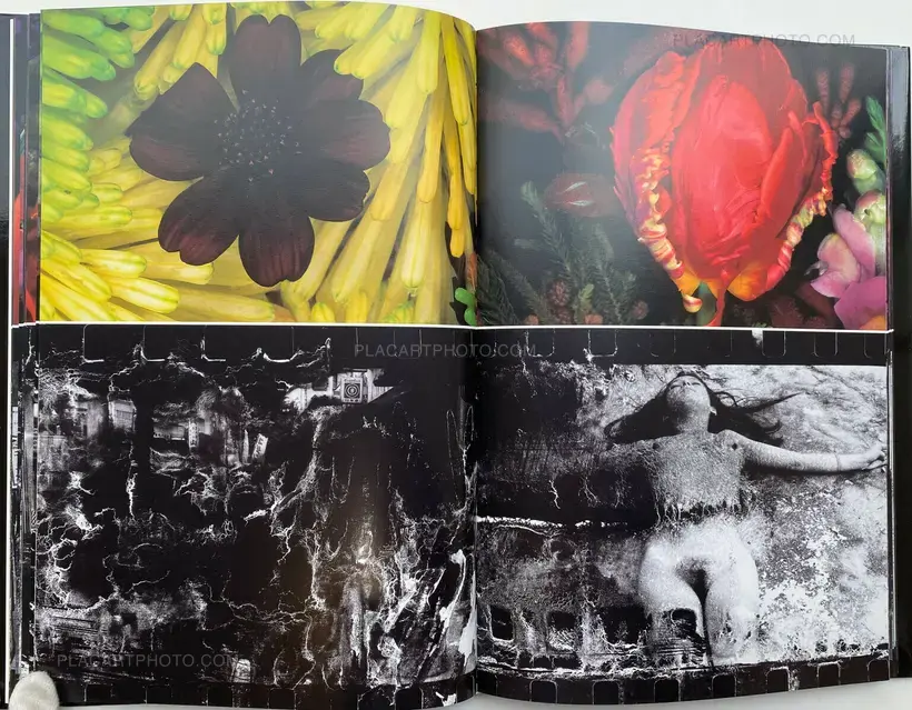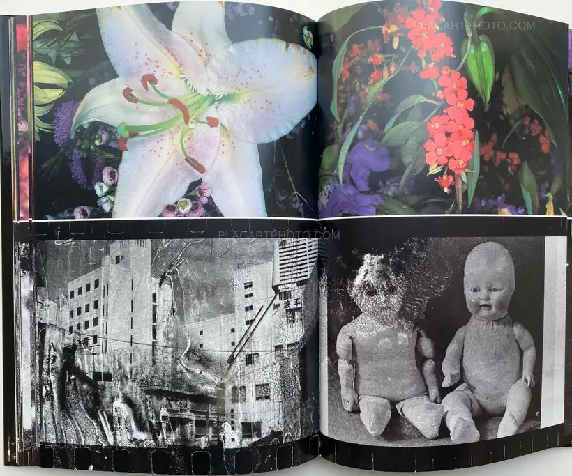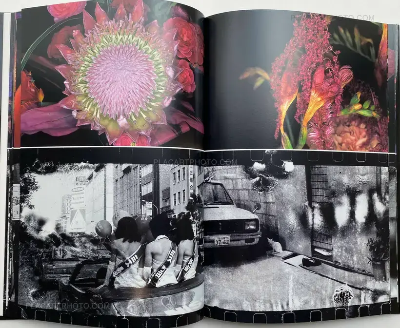 In the wild sweep of Araki’s never-ending portrait of Tokyo, shockingly divergent subjects are frequently paired, suggesting such eternal paradoxes as growth and decay, morality and sin. Shijyo, glossed as the marketplace of emotions,” pairs sumptuously photographed flowers with poorly archived stills recovered from Araki’s 1970s film, Death Reality.