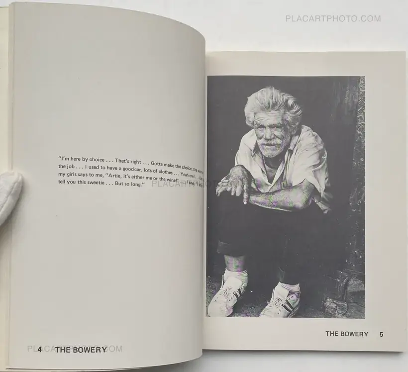 During the 1970's, New York City was close to bankruptcy and there was barely any money for people in need. The homeless community relied on one another and their addiction, whether it was alcohol or drugs, to keep them going. Many united on the Bowery, a two way street that runs north-south starting from Astor Place. While some chose to hide their impurities to protect their dignity, others shamelessly displayed theirs on the Bowery. This photo book paints a picture of what life was like for the addicts in the Lower East Side during the early 70's, with the help from quotes by members of this community.