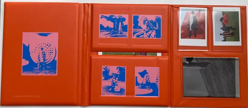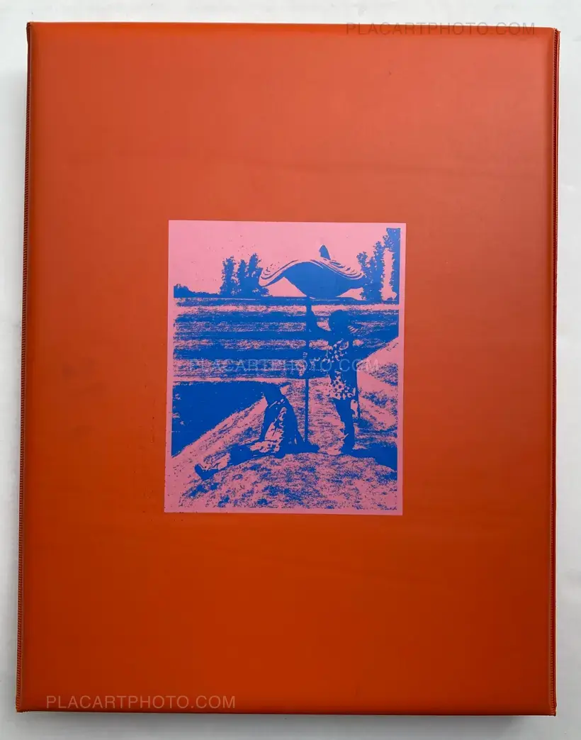 Folding hardcover, 38,5 x 29,5 x 4 cm, color photographs. (Without its box). 4 prints (14,8 x 10,5 cm), 1 poster (42 x 58,5 cm), 2 posters (29,6 x 21 cm), 2 posters (41 x 29,6 cm), 1 poster (59 x 42 cm), 1 print (36 x 24 cm), 2 large posters ( 59 x 42 cm). It comes with an envelope of pins. Limited to 500 copies.