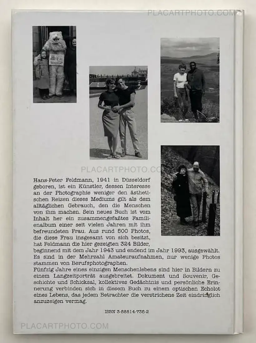 "This book shows photos in which (among others) the same person is always depicted. In terms of content, it is a summarized "family album" of a woman. The 330 pictures shown here were selected from a total of around 500 photos that this woman owns of herself, starting in 1943, the last photos dating from 1994. The selection of the pictures was mainly based on documentary, factual considerations. The order of the photos was based on their chronological origin. The number of photographers who took these pictures is not known, but is probably more than 200. In any case, the majority are amateur photographers; only a few photos were taken by professional photographers. Most of the individual images are shown unaltered, i.e. uncropped and not cropped. All the pictures in this book are in black and white. The originals are exclusively black and white in the first two decades of the period shown, before the first color images appear in the 1960s. In the last two decades shown, the original photos are all in color. The legends at the end of the book provide information about the time, place of origin and motifs of the photos."