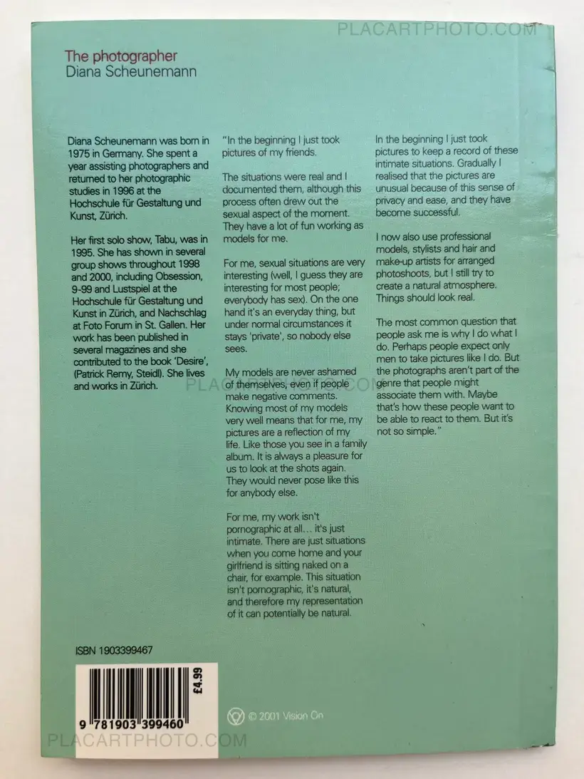 "In the beginning I just took pictures of my friends. The situations were real and I documented them, although this process often drew out the sexual aspect of the moment. They have a lot of fun working as models for me. For me sexual situations are very interesting (well, I guess they are interesting for most people; everybody has sex). On the one hand it's an everyday thing, but under normal circumstances it stays private, so nobody else sees. My models are never ashamed of themselves, even if people make negative comments. Knowing most of my models very well means that for me, my pictures are a reflection of my life. Like those you see in a family album. It is always a pleasure for us to look at the shots again. They would never pose like this for anybody else. For me, my work isn't pornographic at all ..it's just intimate. There are just situations when you come home and your girlfriend is sitting naked on a chair, for example. This situation isn't pomographic, it's natural, and therefore my representation of it can potentially be natural.