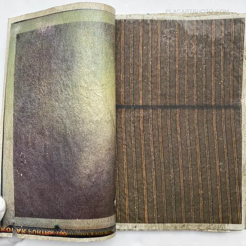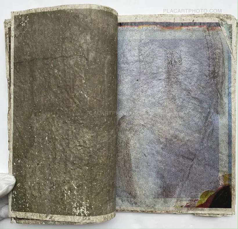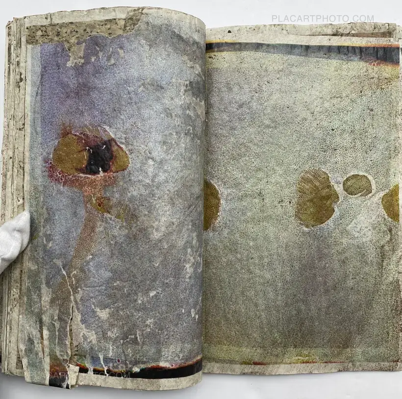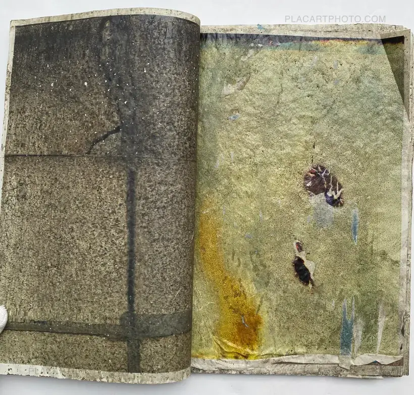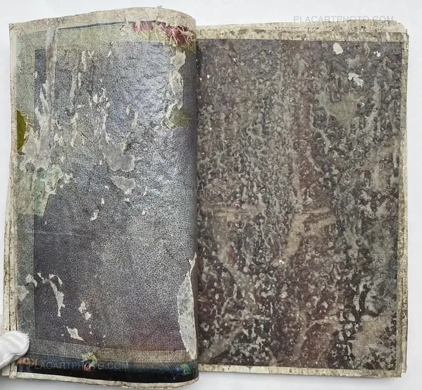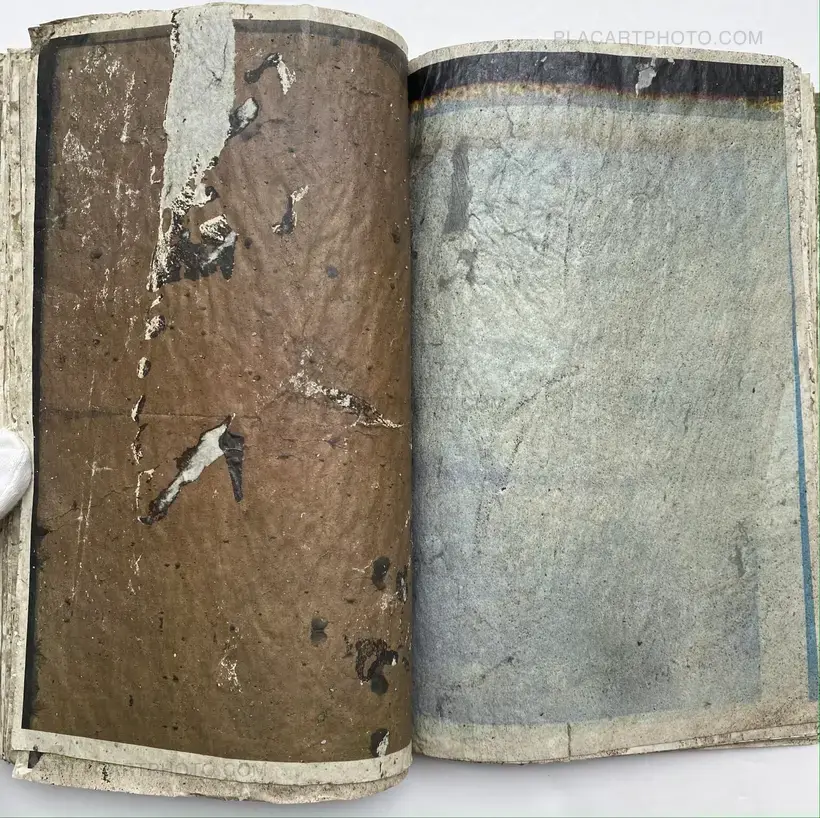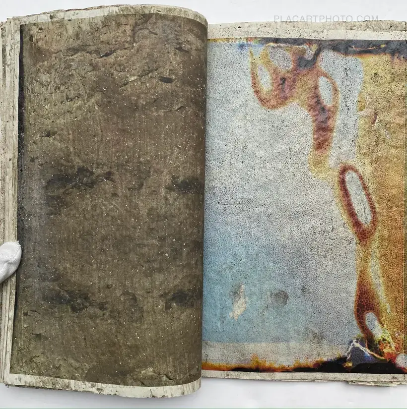 In their experimental live performance Effect Twin, Japanese photographers Daisuke Yokota and Hiroshi Takizawa grated rusted iron objects and a block of cement, respectively, onto printouts of their photographs before sealing them with wax and glue, drying them out, and binding them together into 75 unique photobooks.