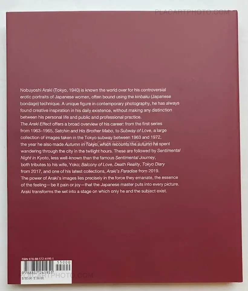 Beginning with Araki’s first series “Satchin and His Brother Mabo” from the mid-1960s, “The Araki Effect” offers readers a broad overview of Araki’s milestone works in 300 images, up until the “Araki’s Paradise” series from 2019: Subway to Love, Autumn in Tokyo, Sentimental Night in Kyoto, Balcony of Love, Kinbaku, Death Reality, Tokyo Summer Story, The 60th Year After the End of the War, August, Anniversary of Hokusai’s Death (part of the Tokyo Diary series), and Gloves.