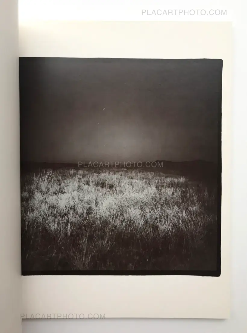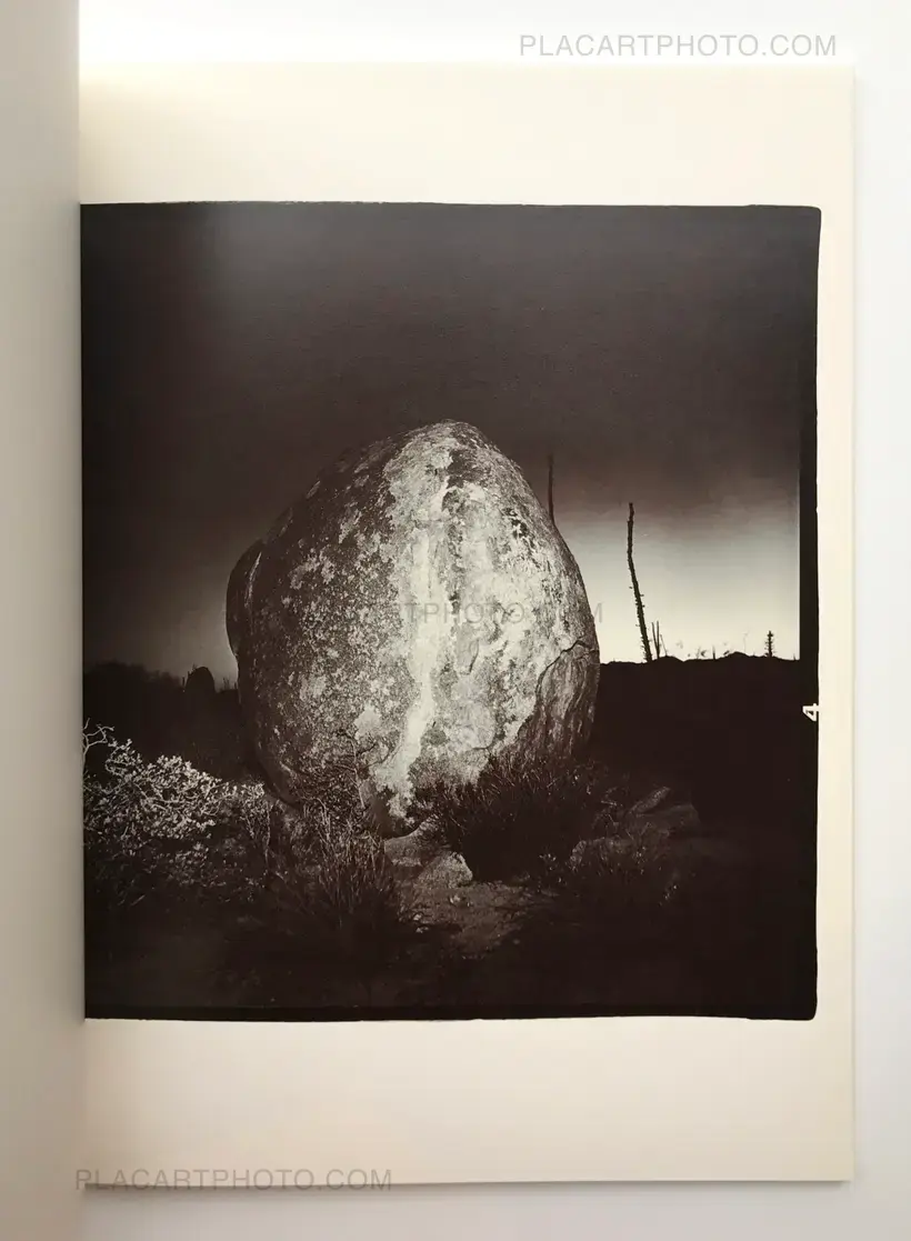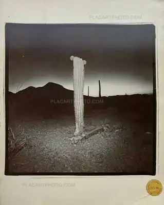 "A mysterious, somber and surreal collection of photographs depicting the desert landscape at night. Richard Misrach captured these images with an intense flash of light that startles the scenery. "Thus it is a book about the camera revealing what the eye cannot see...a strange beauty, almost of a forensic nature, with cacti and details of the desert floor being highlighted unnaturally by the strobe. Misrach highlighted this artificiality by heavily toning his prints with split-tone selenium, a tonality picked up well in the printing of the book. It adds a feeling of menace to the undoubted beauty..."