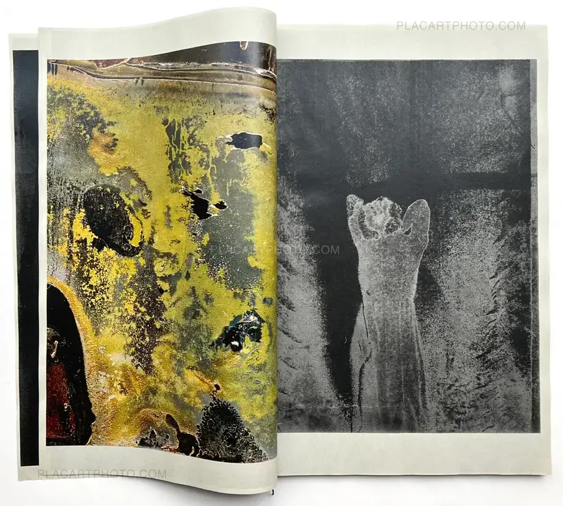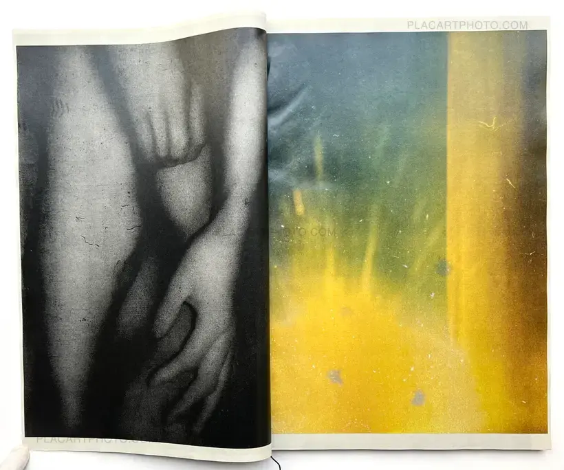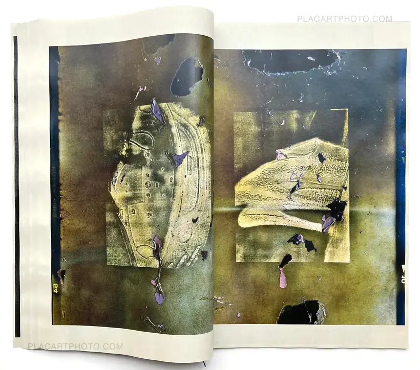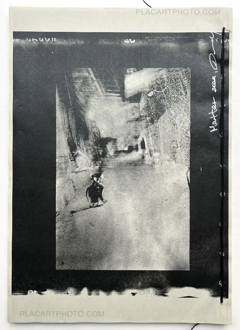 Since 2013, Daisuke Yokata has been working on the Matter series. To create these works, he chooses images at random, prints them and often coats them with hot wax to fuse paper, ink and image, forming a single piece of 'matter'. As part of his self-publishing work since 2014-2015, this is Matter. In this new version, he still works at random with the images that scroll past him like a DJ mixing his pre-recorded sounds, but without any physical intervention on the paper. It's like a rephotograph of his old copies reassembled and edited in a random and unique way.