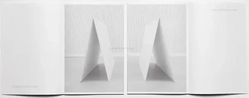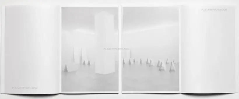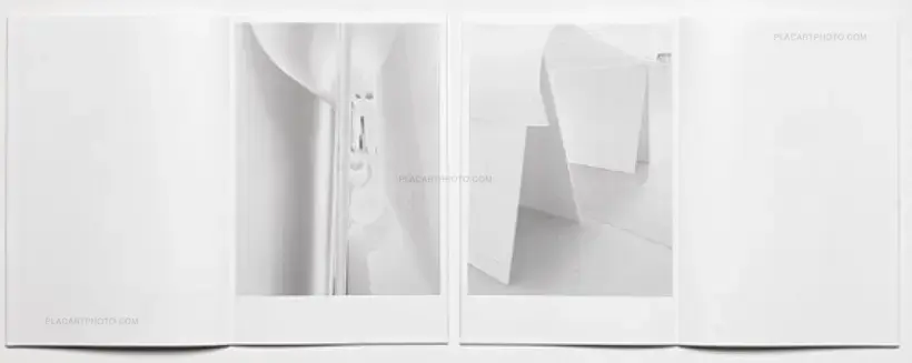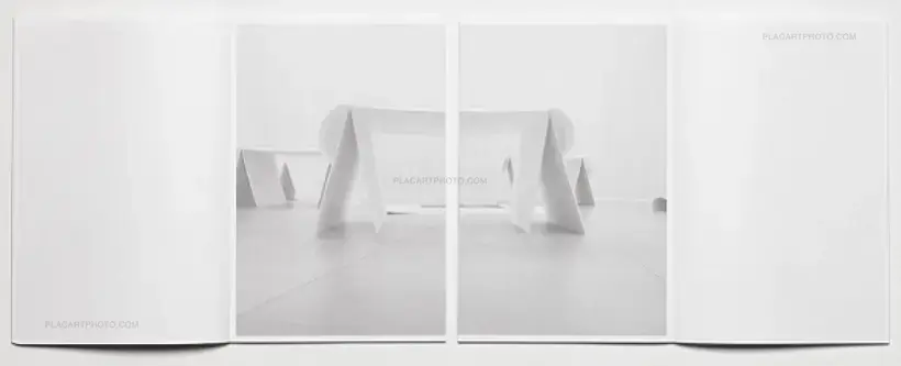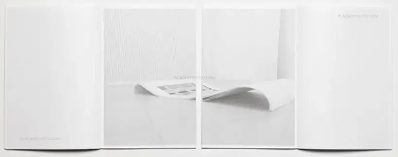 Yokota’s and Pinckers’ Floating Worlds is a catalogue for an exhibition curated by Nicolò Degiorgis at fotoforum Gallery, Bolzano/Bozen, Italy, in May 2016. The exhibition brings together Yokota’s Linger and Pinckers’ Two Kinds of Memory and Memory Itself, and is translated into a book by showing a selection of installation views. It is printed in two separate, but interwoven parts, held together by pages folded alternately into each other (presented in wrapping paper with a red handprinted linocut title block). The concept for the exhibition was based on giving both artists the same amount and type of paper for their prints and an equal amount of wood for their respective exhibition structures. The photographs of each artist were printed on opposite fibre directions, allowing the presentation of the images to be determined by the curling of the prints. Max Pinckers’ work was mounted vertically, while Daisuke Yokota’s prints were suspended horizontally. No nails or adhesives were used in the exhibition.