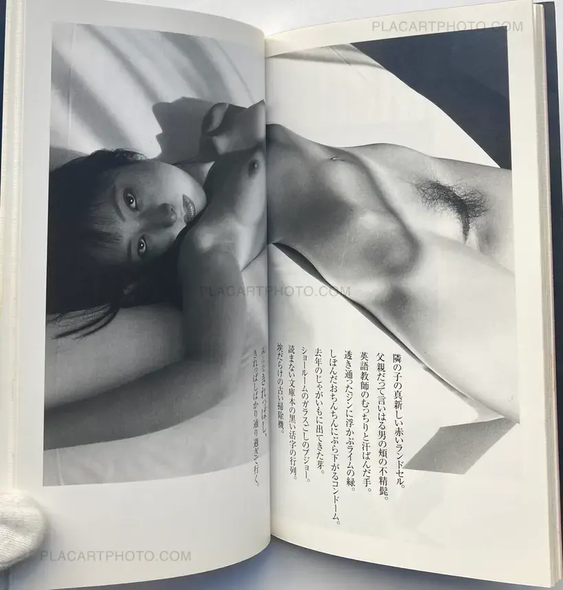 A collection of black and white photographs including Tokyo urban landscapes, erotic portraits of various women and still lifes. The photographs are accompanied with texts by poet Shuntaro Tanikawa.