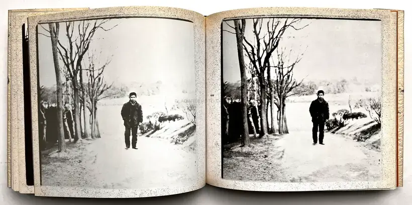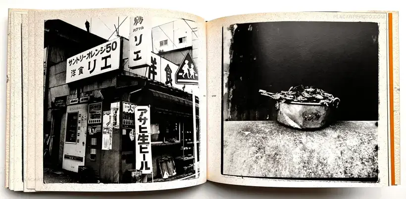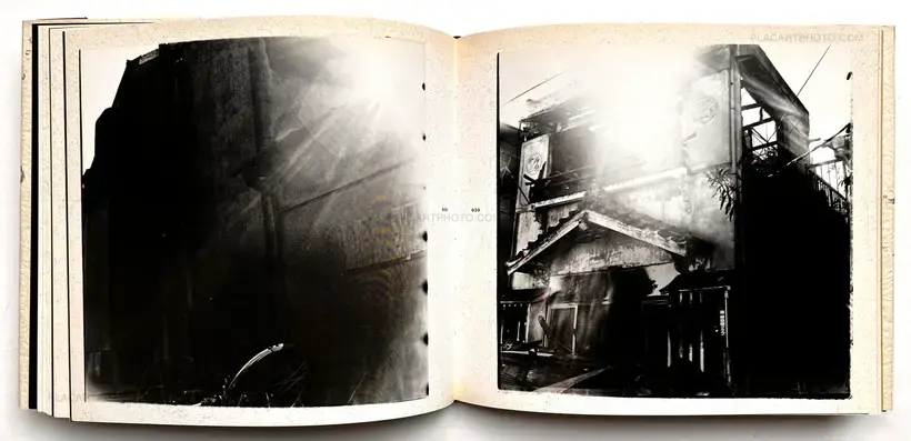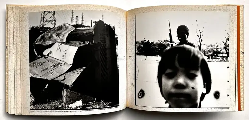 Suzuki Kiyoshi was born in Fukushima Prefecture in 1943. He graduated from the Tokyo College of Photography in 1969 and began working for the magazine 'Camera Mainichi'. His first book called 'Soul and Soul' was published in 1972. The English title of his third book 'Mind Games' refers to a song by John Lennon. The Japanese title 'Tenmaku no machi' refers to the first chapter of the book that records members of a travelling circus troupe. For Suzuki circus life represented a childhood memory as he enjoyed being taken by his father in his hometown. This is followed by three further chapters namely 'AQUA', 'Lying in Ruins', and 'Fool on the Road', an photographic essay about a homeless man (Urasaki Tetsuo) who Suzuki befriended. This book is nothing less than Suzuki's musings on the meaning of life. The folding plate combines a list of the images with excerpts from his diary.