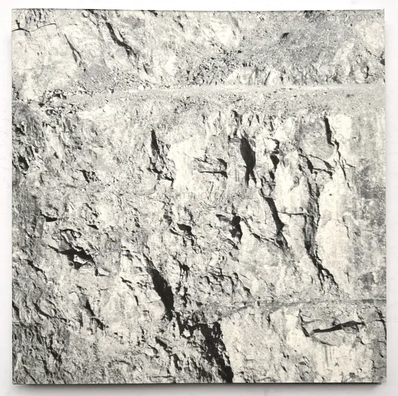 The double-sided photographic print has been intervened by cutting and folding. The viewer is invited to reposition the image’s modules, recombining fragmented details to compose new combinations and volumes. Thus s/he participates in a novel experience of image-making, reconfiguring visual pathways, mixing recto and verso, and making details (the figure, the protagonist) appear and disappear.