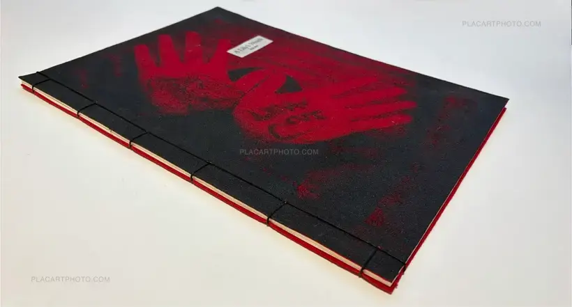 The pages are risograph printed using Japanese soy ink on Awagami, Washi and recycled paper. They are bound in the traditional Japanese stab-binding method and sewn with waxed thread. The covers are constructed from hand-cut and hand-glued Noren hemp fabric, screen printed with acrylic ink.