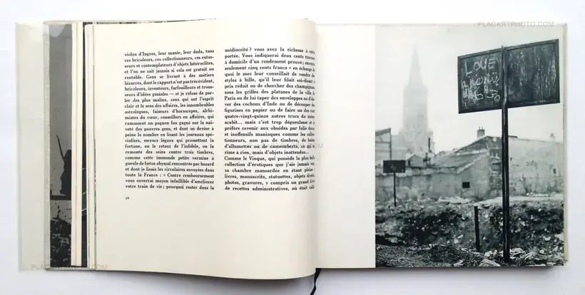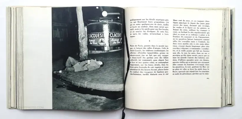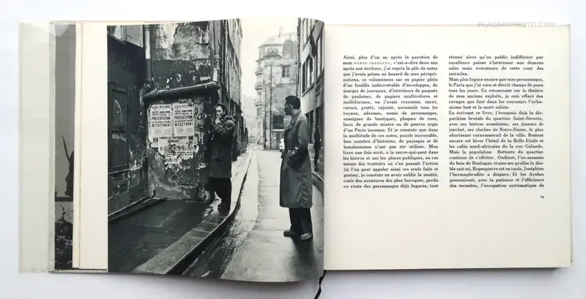 On returning he lived for 3 or 4 years as a clochard amongst the many homeless people in the underground world of Paris. This experience inspired his classic study of the underworld of Paris "Paris Insolite/Unknown Paris" (1952), which he dedicated to his companions Robert Giraud and photographer Robert Doisneau. The book was championed by the remaining Surrealists, and the emerging Situationists based their theory of the derive on Clébert's principles, using his book as a literal guide to the underside of the city. An illustrated edition with photos of Patrice Molinard (who debuted as a stills photographer on Georges Franju's documentary le sang des bêtes) and layout by Massin was published in 1954. On the occasion of the book's reissue by Attila in 2009 he said: