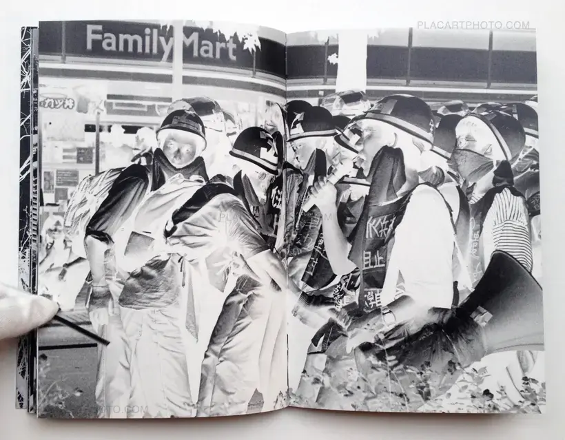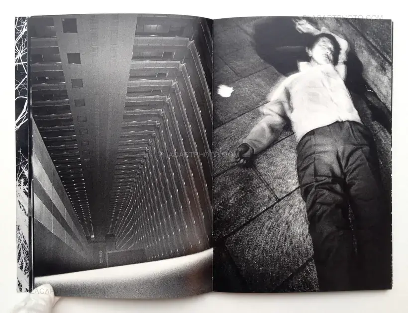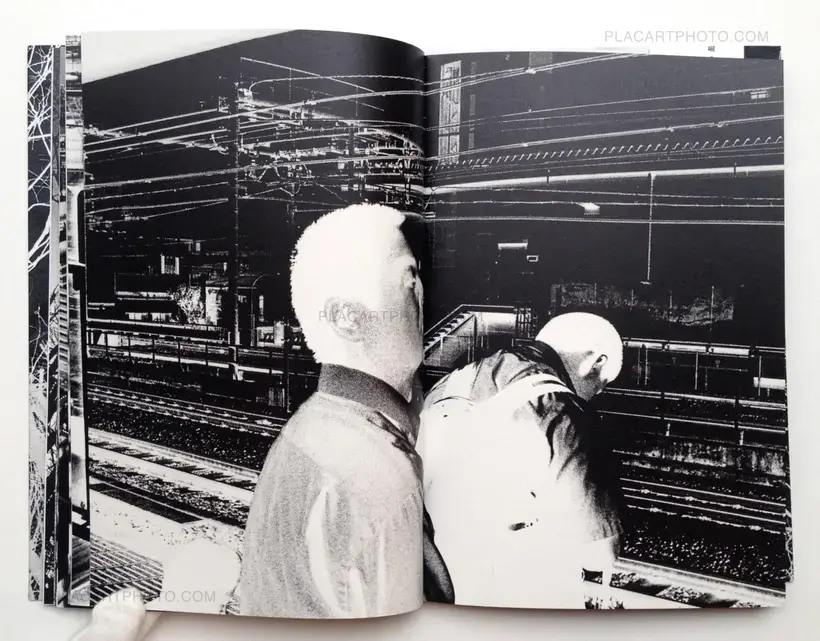 That is what unfolds over the double pages of 寓喩 Guyu, this dense atmosphere of Japanese cities where sometimes the world seems to curve around the individual in a movement whose end can only be photography. Maki's approach starts with a non-resistance to the experience. It shows in 寓喩 Guyu, page after page, and so the energy of the perfectly controlled photographic grain ends up as a dark matter in the galaxy of Japanese cities. As a negative, the now white grain reveals another Japan, radioactive, full of tensions: an invisble evil is at work, that the photographs are trying to feel. In this relationship to the transformed space, infinitely large, and to the infinitely small individuals, photography transcends itself. The pages of the book form a network, the one of the figures that pass through our lives, an allegorical network that touches the imagination as well as the most prosaic life, in a real photographic writing.